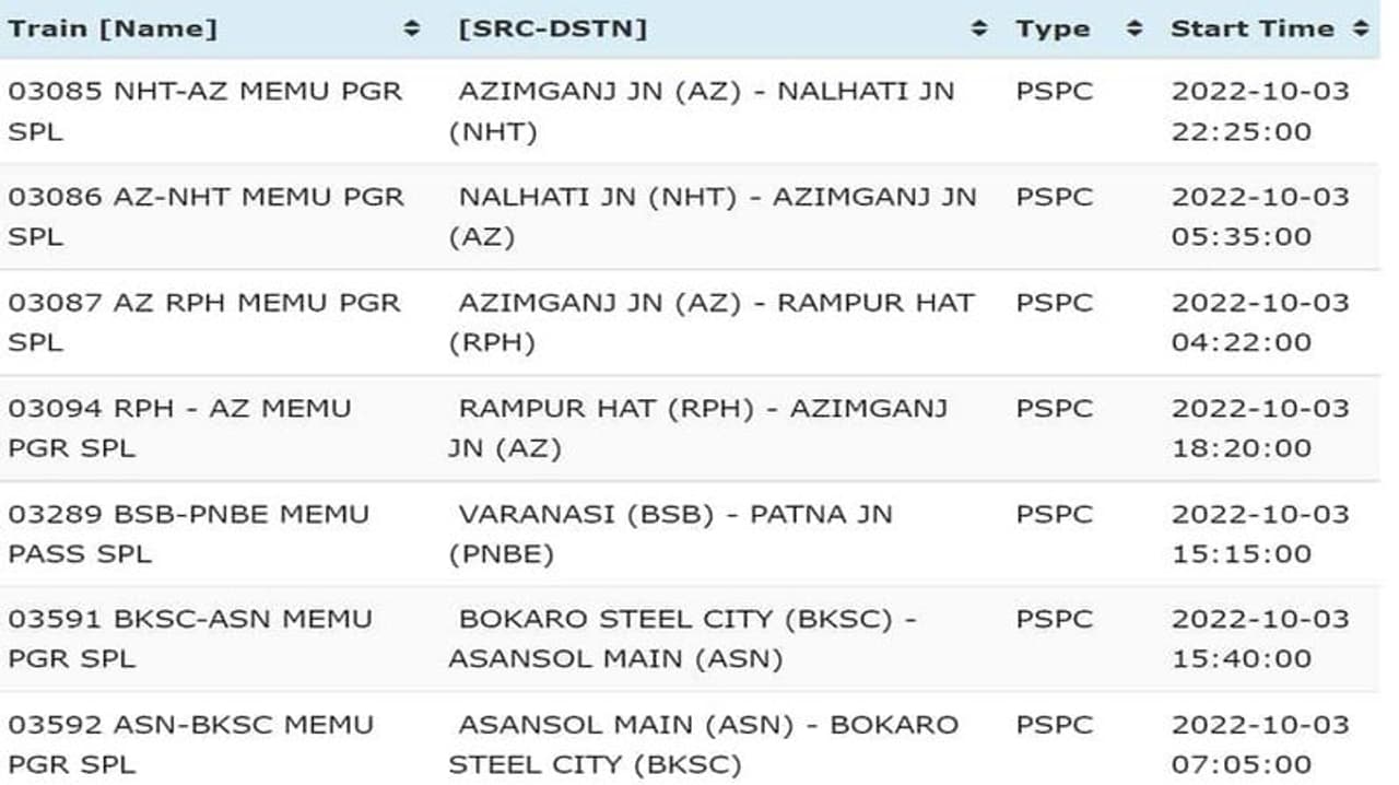भारतीय रेलवे ने 3 अक्टूबर (सोमवार) को मेंटेनेंस और ऑपरेशनल इश्यू की वजह से 191 ट्रेनें रद्द कर दी हैं। इनमें 146 ट्रेनें पूरी तरह रद्दी की गई हैं, जबकि 31 ट्रेनों को आंशिक रूप से रद्द किया गया है। वहीं कुछ ट्रेनों को डायवर्ट भी किया गया है।