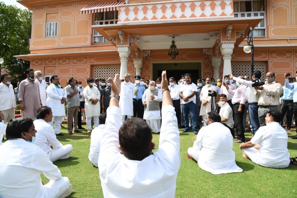 कांग्रेस विधायक फिलहाल धरने से उठ गए हैं। सभी कांग्रेसी विधायक होटल के लिए रवाना हुए। इसके बाद गहलोत की कैबिनेट बैठक हुई।