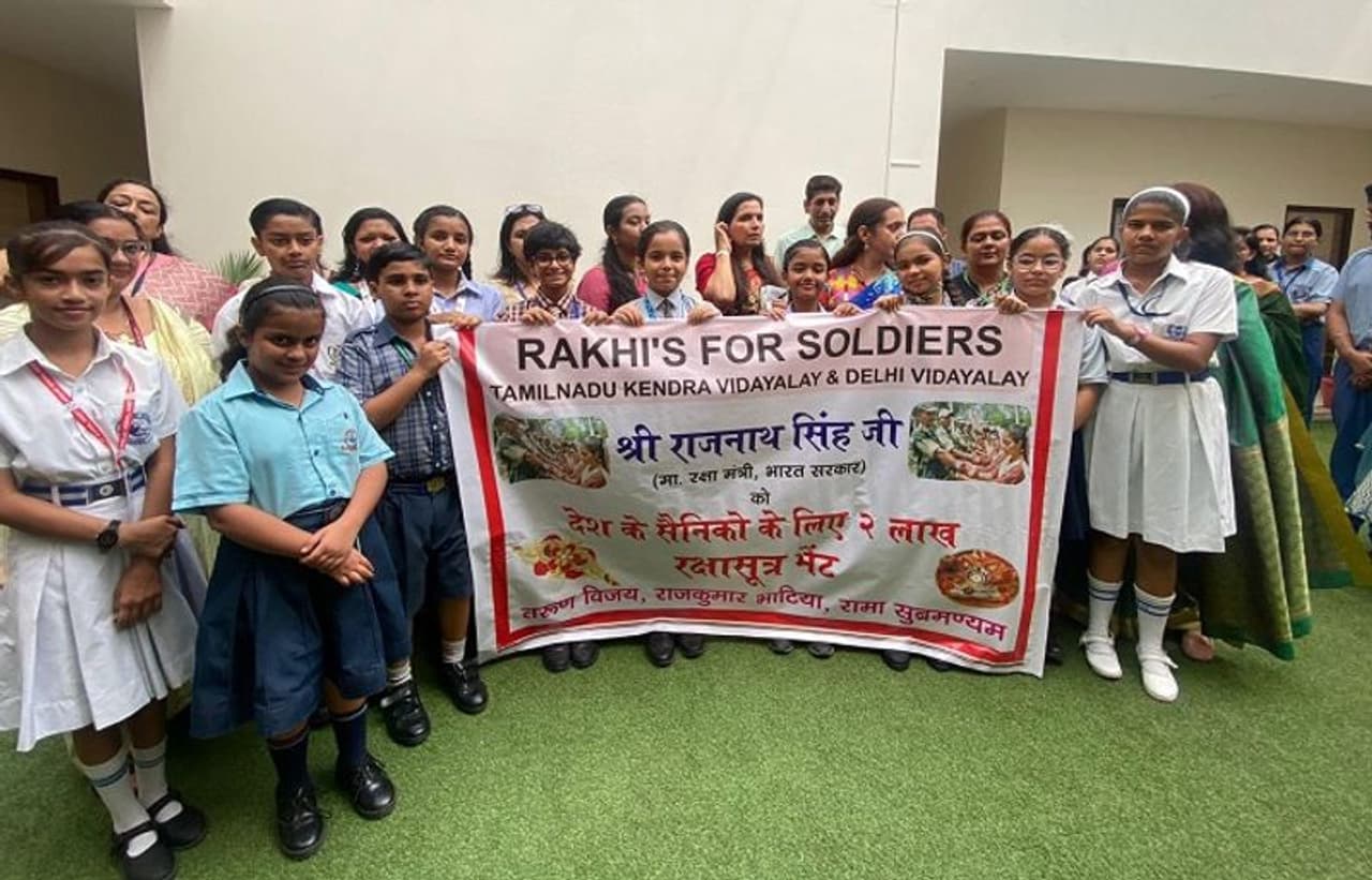 छात्राओं ने सीमा पर तैनात सेना के जवानों के लिए हाथ से बनी 2 लाख राखियां भेजी है। रक्षा मंत्री राजनाथ सिंह ने छात्राओं के इस प्रयास की प्रशंसा की है। राजनाथ सिंह ने जवानों के लिए राखी बनाने वाली सभी छात्राओं को आशीर्वाद दिया।