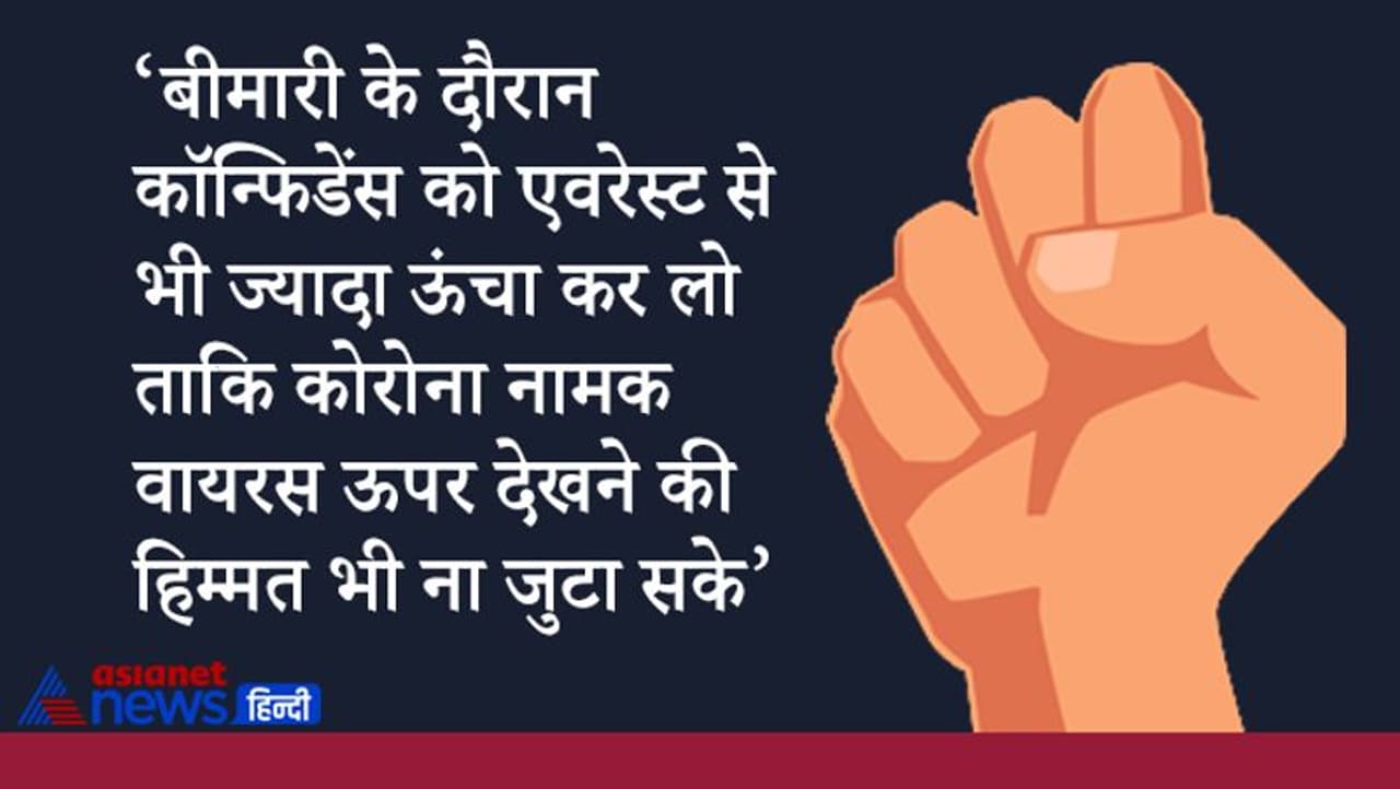 ''6 अप्रैल की शाम को डॉक्टर ने जब पॉजिटिव होने की जानकारी दी, उसी वक्त मैंने खुद को तैयार कर लिया था। उसी दिन आइसोलेट हो गया था। 8 अप्रैल को रिपोर्ट आने के बाद मैंने सोच लिया था कि खुद को एकदम स्ट्रांग कर लेना है। एक भी फालतू बातें दिमाग में नहीं आने देनी हैं। रूम में कैद रहना है। पूरी सावधानी बरतनी है। बराबर दवाई लेनी है। प्रोटीन युक्त खाना खाना है। एक्सरसाइज करनी है। कुल मिलाकर इम्यूनिटी को स्ट्रांग करना है। यह सब मैंने माइंड में बैठा लिया। पहले दिन से ही क्लियर था कि हॉस्पिटलाइज्ड वाली कंडीशन नहीं बनने देना है। मेरे अंदर ये बात चल रही थी कि मैं हॉस्पिटल से ज्यादा तेजी से घर पर रिकवर हो सकता हूं। मैंने अपने माइंड को एक मैसेज भेजा कि भाई कोरोना कोई हौवा नहीं है। बी पॉजिटिव। कॉन्फिडेंस को एवरेस्ट से ज्यादा ऊंचा कर लिया था, और वायरस से कह भी दिया था कि अब हिम्मत है तो आंख उठाकर ऊपर देख।''