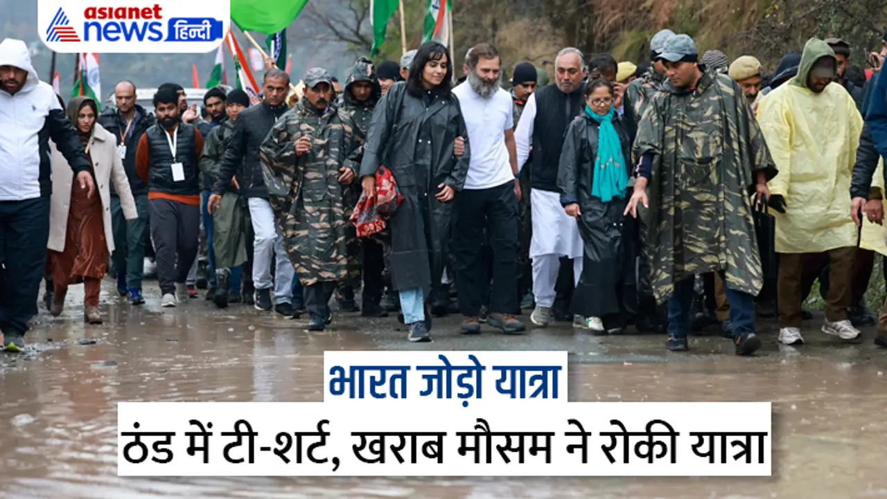- कश्मीर में एंट्री से पहले 'भारत जोड़ो यात्रा' के साथ मौसम की बेईमानी, ठंड में भी ट्रेडमार्क टी-शर्ट पहने गड्ढे लांघते दिखे राहुल गांधी