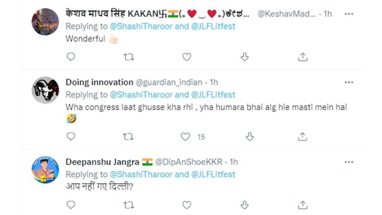 एक शख्स ने लिखा- उधर कांग्रेस लात-घूंसे खा रही है और इधर हमारा भाई अलग ही मस्ती में है। वहीं एक अन्य यूजर ने कहा- आग लगे बस्ती में, शशि थरूर मस्ती में। एक शख्स ने कहा- राहुलजी ईडी में हैं और आप एन्जॉय कर रहे हैं लंदन में। एक अन्य शख्स ने पूछा- आप नहीं गए दिल्ली।
