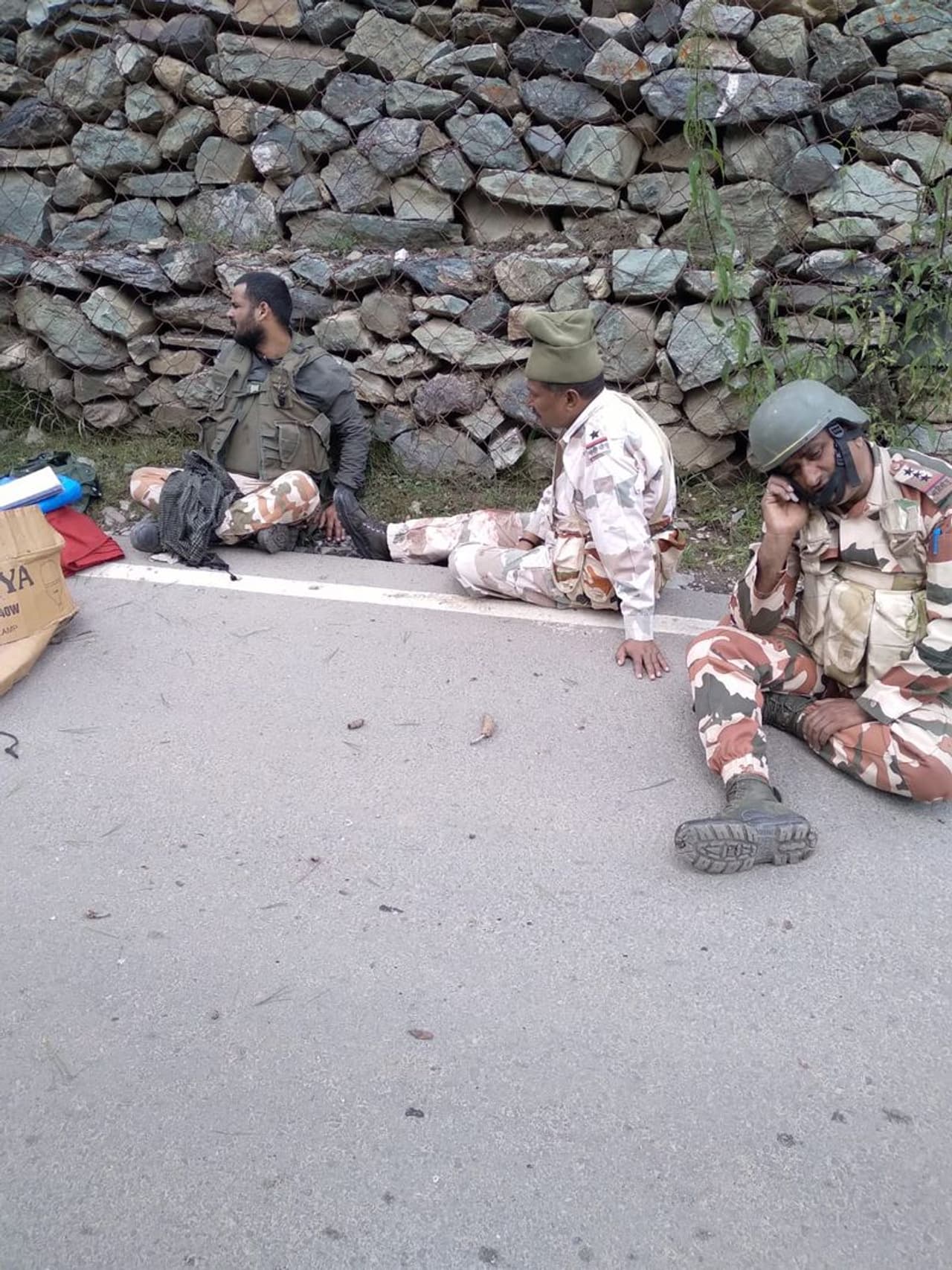 हादसे के बाद रेस्क्यू टीम का इंतजार करते घायल जवान