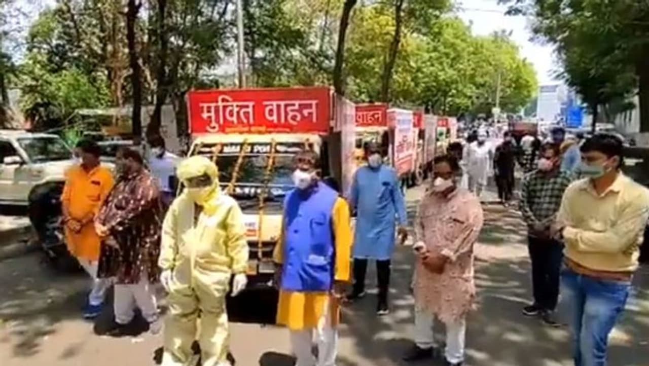 भोपाल, मध्य प्रदेश. कोरोना संक्रमण को लेकर मध्य प्रदेश की राजधानी भोपाल की स्थिति कुछ अच्छी नहीं है। श्मशान घाटों और कब्रिस्तानों में अंतिम संस्कार के लिए लाइनें लगी हैं। शवों को ले जाने गाड़ियां नहीं मिल रहीं। इसे देखते हुए भोपाल के पूर्व महापौर और भाजपा नेता आलोक शर्मा ने सोमवार को अस्पतालों के लिए मुक्तिवाहन सौंपे। लेकिन वे यह भूल गए कि वाहनों के साथ फोटोशूट कराना फजीहत का कारण बन जाएगा। यही नहीं, उनके कार्यकर्ताओं(फोटो में मुक्तिवाहन में बैठा) ने मुक्तिवाहन में बैठकर भी फोटो खिंचवाया। बस फिर क्या था, इस मामला सोशल मीडिया पर खूब चर्चा का विषय बना हुआ है।