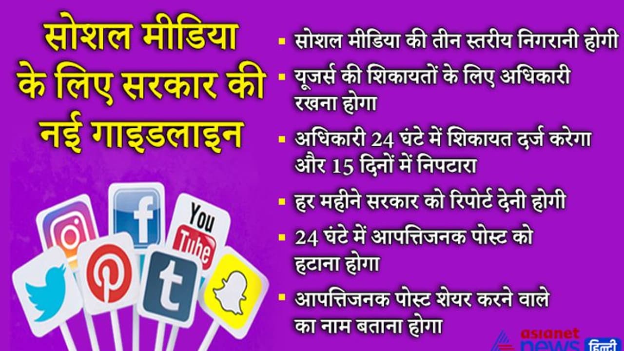 दो श्रेणियों में बांटा गया सोशल मीडिया : सोशल मीडिया को दो श्रेणियों में बांटा गया है। पहला इंटरमीडरी और दूसरा सिग्निफिकेंट सोशल मीडिया सिग्निफिकेंट सोशल मीडिया इंटरमीडरी पर अतिरिक्त कर्तव्य है। सरकार जल्द इसके लिए यूजर संख्या का नोटिफिकेशन जारी करेगी। कंपनियों को शिकायत के 24 घंटे के भीतर आपत्तिजनक कंटेंट हटाना होगा। चाहें वह शिकायत उस व्यक्ति ने दर्ज कराई हो या उसके ऐवज में किसी अन्य शख्स ने कराई थी।