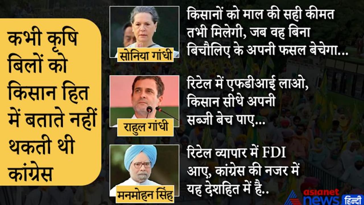 नई दिल्ली. कृषि कानूनों के विरोध के बीच दिल्ली और आसपास के इलाकों में किसानों का प्रदर्शन जारी है। इसी बीच गुरुवार को कांग्रेस नेता राहुल गांधी ने कृषि कानूनों के विरोध में 2 करोड़ हस्ताक्षरों को राष्ट्रपति रामनाथ कोविंद को सौंपा। खास बात ये है कि राहुल गांधी जिन कृषि कानूनों को किसान विरोधी बता रहे उन्हीं का समर्थन करते पूर्व प्रधानमंत्री मनमोहन सिंह, सोनिया गांधी और राहुल गांधी का वीडियो वायरल हो रही है। वीडियो में सोनिया गांधी किसानों को बिचौलिओं से मुक्ति दिलाने की बात कर रहीं, तो वहीं, राहुल गांधी रिटेल में एफडीआई निवेश की बात कर रहे हैं।