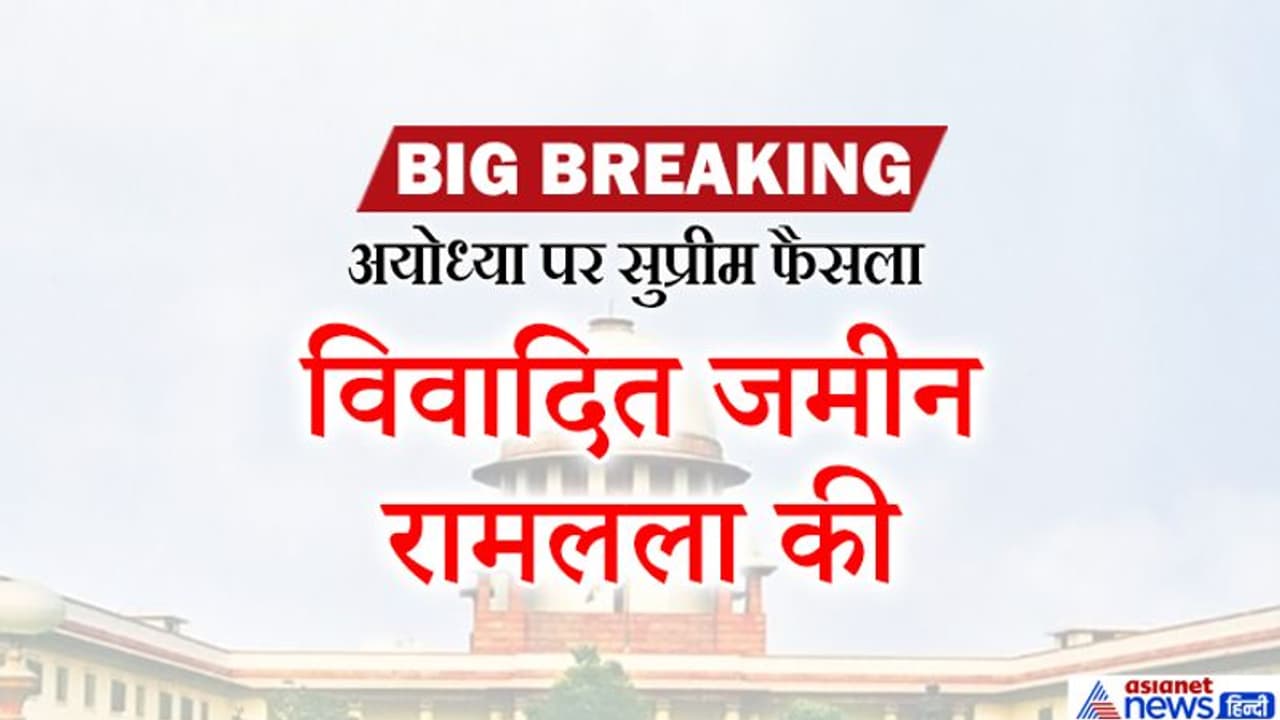 नई दिल्ली. अयोध्या में राम मंदिर-बाबरी मस्जिद जमीन विवाद पर सुप्रीम कोर्ट ने शनिवार को फैसला सुनाया। इस फैसले को चीफ जस्टिस रंजन गोगोई की अध्यक्षता वाली पांच जजों की बेंच ने एकमत से सुनाया। सुप्रीम कोर्ट ने अपने फैसले में विवादित जमीन पर रामलला का मालिकाना हक बताया। साथ ही सुप्रीम कोर्ट ने केंद्र सरकार को अयोध्या में मंदिर बनाने का अधिकार दिया है।