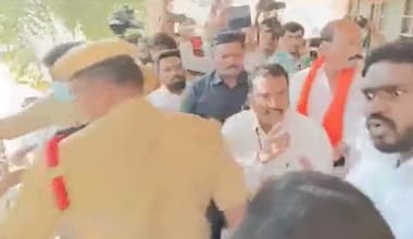 तेलंगाना के जनगांव में पोलिंग बूथ के बाहर कांग्रेस और बीआरएस के कार्यकर्ताओं के बीच झड़प हुई है। पुलिस के सामने दोनों पार्टी के लोग आपस में भिड़ गए। उनके बीच धक्का-मुक्की और हाथापाई हुई। पुलिस ने किसी तरह मामले को शांत कराया।