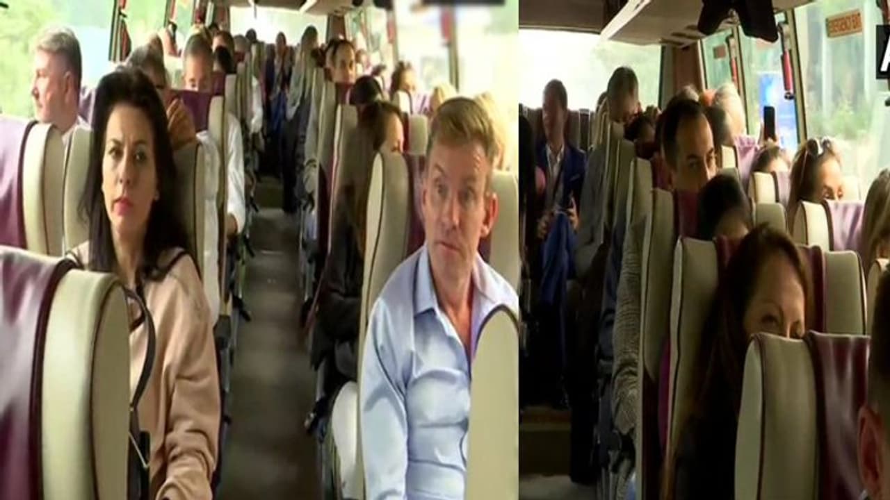यूरोपीय यूनियन की 28 सांसदों की टीम श्रीनगर पहुंच गई है। घाटी पहुंचने के लिए सांसदों को एक बस में सफर करते दिखाया जा रहा है।