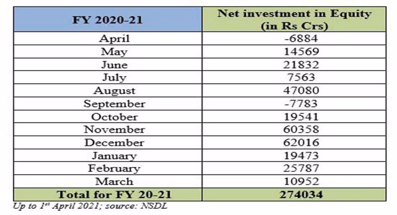 कोरोना महामारी में जब पूरे विश्व की अर्थव्यवस्था बेहद खराब स्थिति से उबरने से जद्दोजहद कर रही है तो उस वक्त भारतीय अर्थव्यवस्था की साख विदेशी निवेशकों की नजर में बढ़ी है। वित्तीय वर्ष 2020-21 में भारतीय इक्विटी बाजारों में भारी विदेशी निवेश इस बात की गवाही दे रहा है।