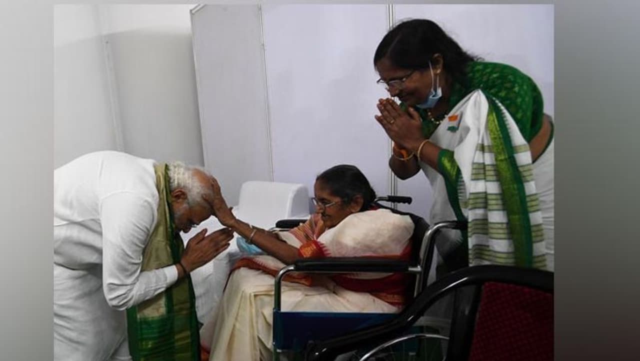 प्रधानमंत्री नरेंद्र मोदी(Prime Minister Narendra Modi) 4 जुलाई को आंध्र प्रदेश के भीमावरम में थे। यहां की एक तस्वीर मीडिया और सोशल मीडिया पर वायरल है। तस्वीर में मोदी ने प्रोटोकॉल तोड़कर आंध्र प्रदेश के महान स्वतंत्रता संग्राम सेनानी पासाला कृष्ण मूर्ति की बेटी 90 वर्षीय पासाला कृष्ण भारती के आगे झुककर आशीर्वाद लिया।