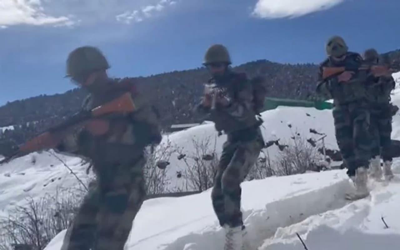 भारतीय सेना ने उत्तराखंड के पहाड़ी इलाके में चीन से लगती सीमा के पास गश्त कर रहे जवानों का एक वीडियो शेयर किया है। वीडियो में देखा जा सकता है कि सैनिकों की एक टुकड़ी बर्फ से ढ़ंके पहाड़ी इलाके में गश्त कर रही है। स्नो बूट पहने ये जवान राइफल लेकर बर्फ के बीच चल रहे हैं। जवानों ने पीठ पर गोलियां, राशन और अन्य जरूरी सामानों से भरा बैग भी टांग रखा है। वीडियो के अगले हिस्से में जवान घुटने से भी अधिक गहराई तक बर्फ में गश्त करते दिख रहे हैं। पूरे कॉम्बैट गियर (लड़ाई में इस्तेमाल होने वाले सामान) के साथ ये जवान राइफल लिए गश्त कर रहे हैं। जवानों ने पीठ पर स्की बांध रखा है। बर्फ में अपना संतुलन बनाने के लिए जवान स्की स्टीक का सहारा ले रहे हैं।