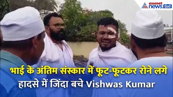 गुजरात के अहमदाबाद में दर्दनाक प्लेन हादसे में 297 लोगों की मौत हो गई। अहमदाबाद से लंदन के लिए रवाना हुआ प्लेन टेक ऑफ के कुछ सेकेंड बाद ही क्रैश होकर एक रिहायशी इमारत से टकरा गया। इससे इमारत में रहने वाले लोगों को भी नुकसान हुआ।एकमात्र जीवित बचे विश्वाश रमेश अपने भाई के अंतिम संस्कार में शामिल हुए, जिन्होंने दुर्घटना में अपनी जान गंवा दी
