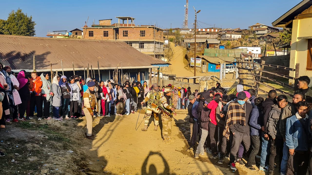 नागालैंड के शमातोर जिले में विधानसभा चुनाव के लिए बड़ी संख्या में मतदाता वोट डालने पहुंचे।