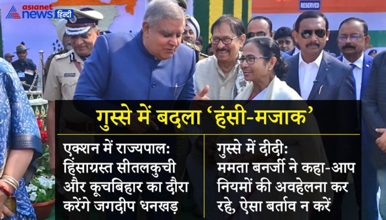 पश्चिम बंगाल में राज्यपाल जगदीप धनखड़ और मुख्यमंत्री ममता बनर्जी के बीच विवाद बढ़ता ही जा रहा है। राज्यपाल के चुनावी हिंसाग्रस्त दौरे से दीदी खफा हैं। उन्होंने राज्यपाल को लिखी चिट्ठी में कहा कि यह प्रोटोकॉल के खिलाफ है। सरकार ने राज्यपाल को अपना हेलिकॉप्टर भी उपलब्ध नहीं कराया है। ऐसे में राज्यपाल अब BSF के हेलिकॉप्टर का इस्तेमाल करेंगे।
