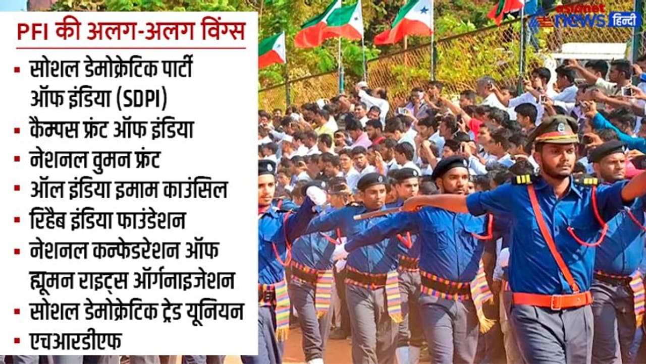 केंद्र सरकार ने पीएफआई से जुड़े जिन संगठनों को बैन किया है, उनमें कुल 8 विंग शामिल हैं।
