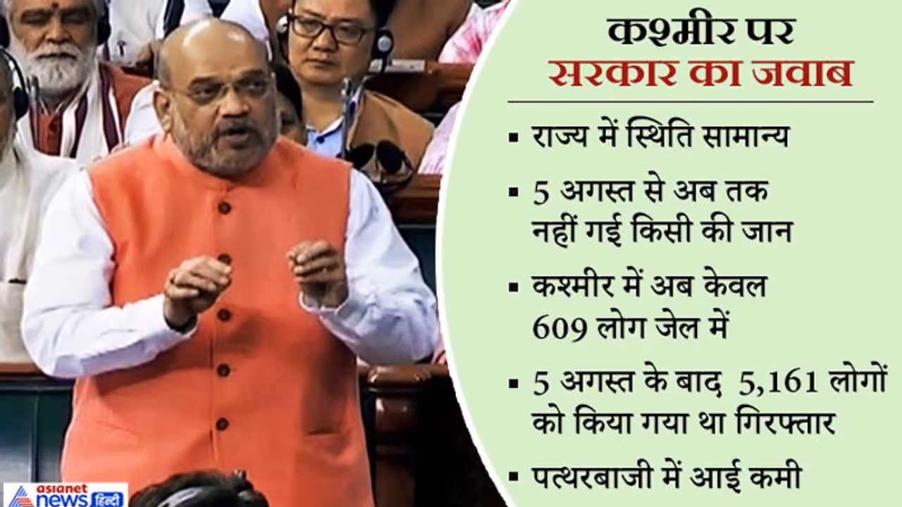 अमित शाह ने जवाब दिया, 'वहां स्थिति सामान्य हो चुकी है। देश-दुनिया में कई तरह की भ्रांतियां इस बारे में फैली हुई है। राज्य में 5 अगस्त के बाद पुलिस फायरिंग की वजह एक भी व्यक्ति की जान नहीं गई है। पत्थरबाजी की घटनाओं में पिछले साल के मुकाबले कमी आई है। सभी स्कूल खुले है। परीक्षा अच्छे तरीके से ली जा रही है। सभी अस्पताल और स्वास्थ्य केंद्र खुले हैं। दुकानें सुबह खुलती हैं, दोपहर में बंद रहती हैं। शाम को फिर खुल जाती हैं।