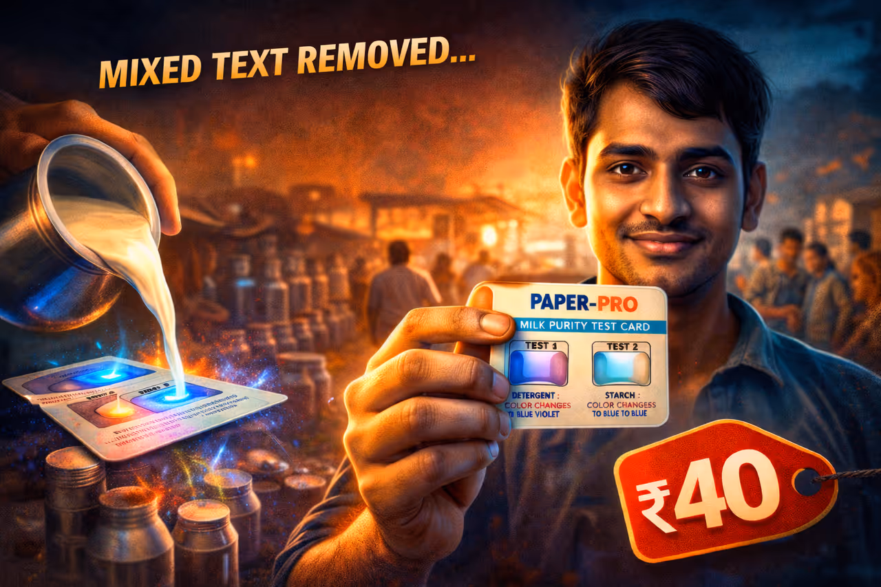 Milk Adulteration Test: क्या अब दूध पीने से पहले लैब जाने की ज़रूरत नहीं? यूपी के 20 साल के युवा शुत्र तोमर ने सिर्फ 40 रुपये का “पेपर-प्रो टेस्ट कार्ड” बनाया, जो दूध की कुछ बूंदों से ही डिटर्जेंट, स्टार्च और यूरिया की मिलावट पकड़ लेता है।