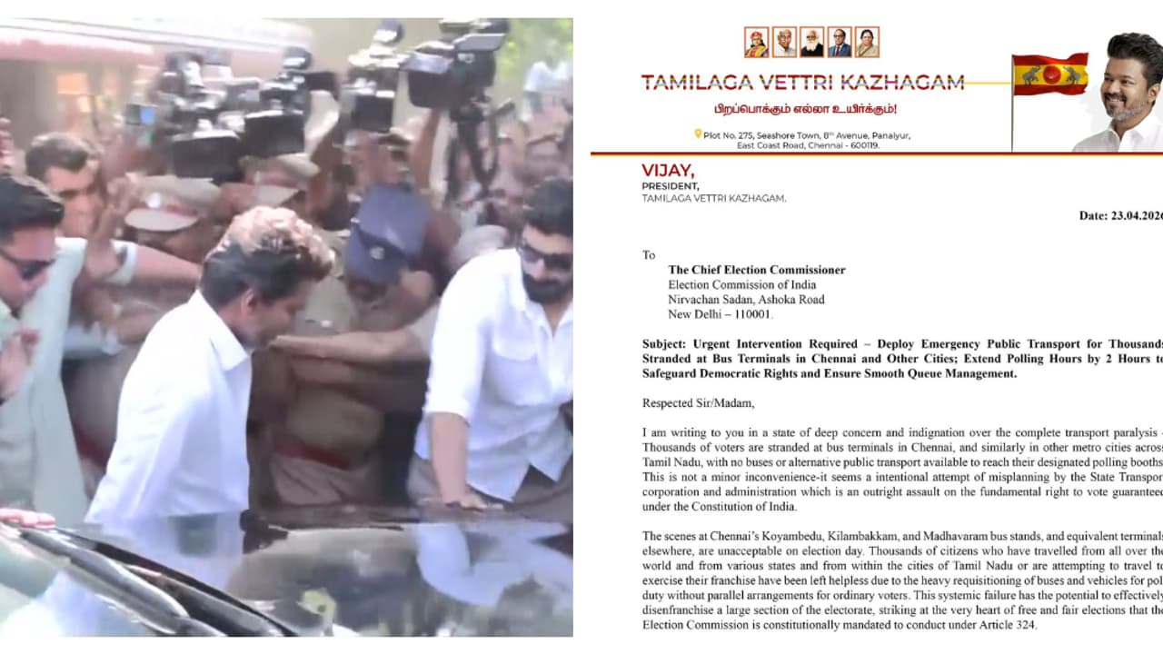 अभिनेता विजय ने तमिलनाडु में बसों की कमी के कारण चुनाव आयोग से मतदान का समय 2 घंटे बढ़ाने की मांग की है। उन्होंने वोटिंग का समय रात 8 बजे तक करने और अतिरिक्त बसें चलाने का आग्रह किया है।