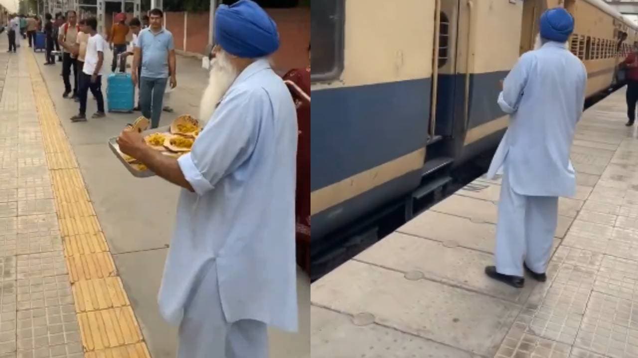 X (पहले ट्विटर) पर शेयर किए गए इस वीडियो में, वह बुज़ुर्ग प्लेटफॉर्म पर चलकर लोगों को खाना बांटते हुए देखे जा सकते हैं। जिमी नाम के एक यूज़र ने यह वीडियो शेयर किया है। जिमी का कहना है कि वह शख्स ट्रेन का इंतज़ार कर रहे थके-हारे यात्रियों को खाना परोस रहे थे। वीडियो में, नीली पगड़ी पहने एक बुज़ुर्ग हाथ में खाने की ट्रे लिए दिख रहे हैं। वह बड़े प्यार और दया के साथ यात्रियों को खाना खिला रहे हैं।