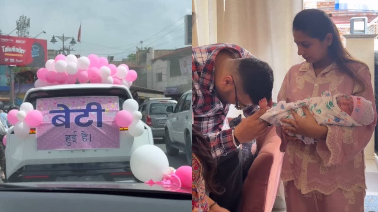 बेटी के जन्म पर एक परिवार के भव्य जश्न का वीडियो वायरल हो रहा है। कारों को गुब्बारों और 'बेटी हुई है' के बैनर से सजाकर बच्ची का स्वागत किया गया। यह वीडियो बेटियों के प्रति समाज की बदलती सकारात्मक सोच को दर्शाता है।