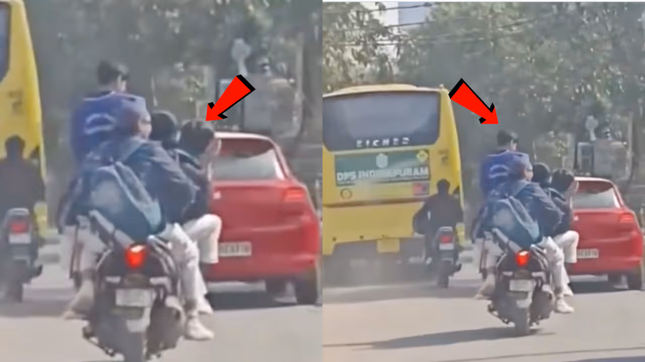 सुबह का समय, स्कूल जाने की जल्दी और ट्रैफिक से भरी सड़क। इसी रोजमर्रा के दृश्य के बीच गाजियाबाद के इंदिरापुरम इलाके से एक वीडियो सामने आया है, जिसने सोशल मीडिया पर चर्चा छेड़ दी है। वीडियो में स्कूल यूनिफॉर्म पहने कई छात्र एक ही स्कूटी पर सवार नजर आ रहे हैं। यह क्लिप पीछे चल रही एक कार से रिकॉर्ड की गई और देखते ही देखते वायरल हो गई। हालांकि, इस वीडियो की स्वतंत्र आधिकारिक पुष्टि नहीं हो पाई है, लेकिन जिस तरह से यह साझा किया जा रहा है, उसने अभिभावकों और स्थानीय लोगों के बीच सुरक्षा को लेकर सवाल खड़े कर दिए हैं।
