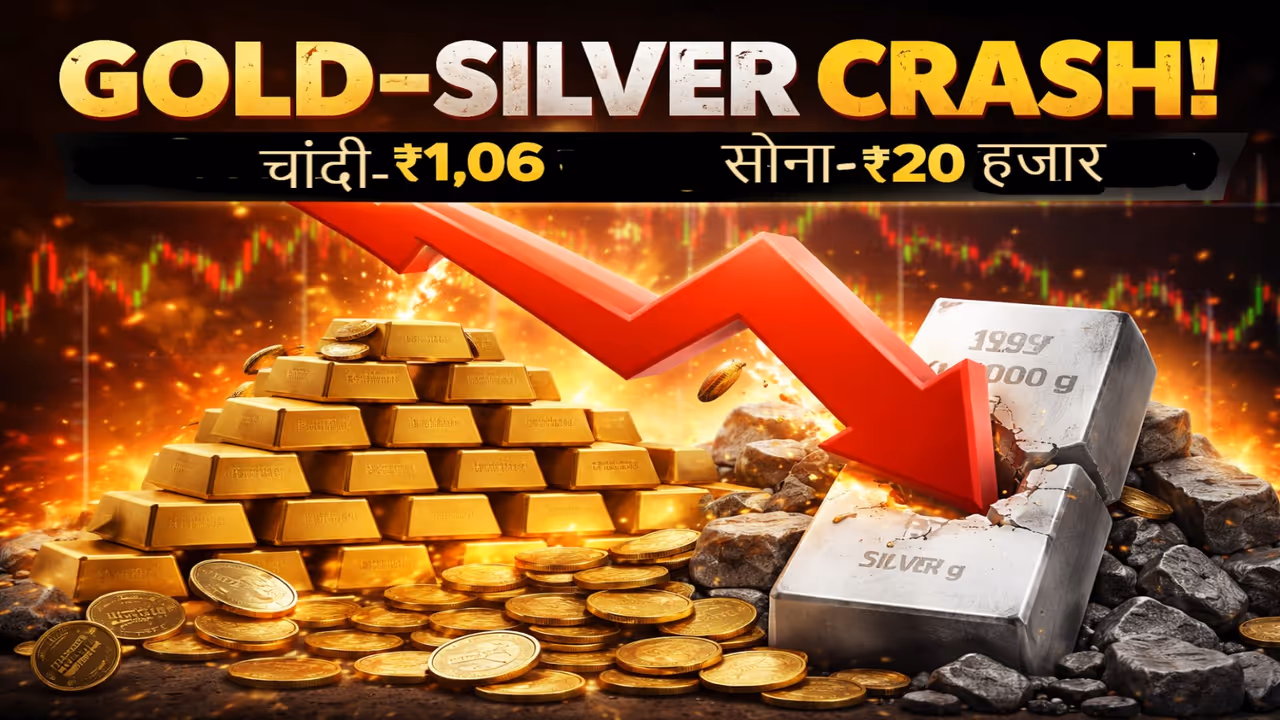 Gold–Silver Crash: रिकॉर्ड ऊंचाई के बाद अचानक मुनाफा वसूली शुरू हुई और चांदी एक ही दिन में ₹1.06 लाख टूट गई, जबकि सोना ₹20 हजार सस्ता हो गया। क्या यह सिर्फ करेक्शन है या कीमती धातुओं में अभी और गिरावट आने वाली है? जानें आज के ताज़ा रेट और वजह।