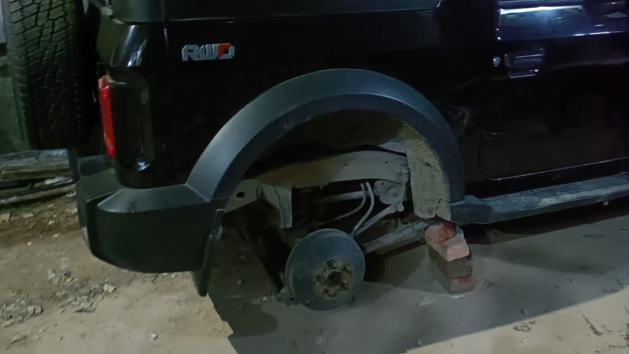 ग्रेटर नोएडा, ओमिक्रोन-2: घर के बाहर खड़ी महिंद्रा थार के दो पहिए निकालकर उसे ईंटों पर खड़ी करके फरार हुए चोर।
