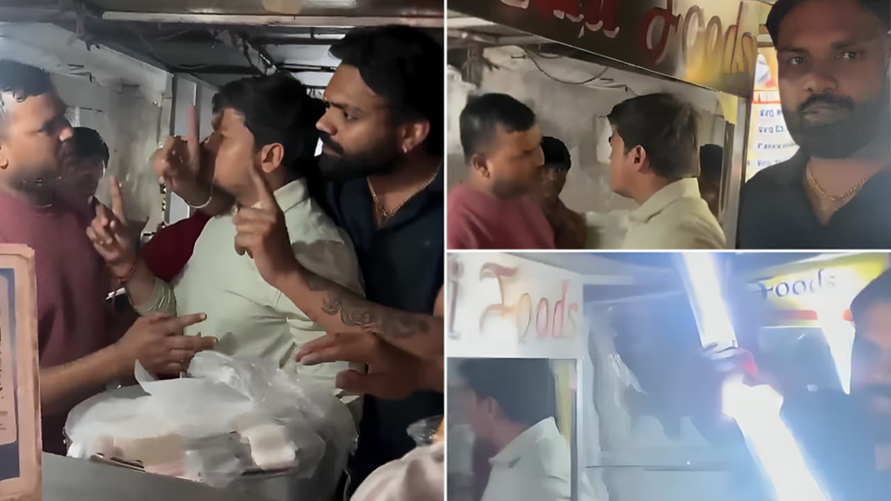 जैसे ही मामला बढ़ा, इस ग्रुप ने स्टॉल के कुछ हिस्सों को तोड़ना शुरू कर दिया। वीडियो में दिख रहा है कि वे मेन्यू बोर्ड तोड़ रहे हैं और मालिक पर चिल्लाते हुए लाइटें भी फोड़ रहे हैं। पूरे क्लिप में, स्टॉल का मालिक बेबस नजर आ रहा है और बार-बार उनसे गुहार लगा रहा है। वह लोगों से कहता है कि वह अगले दिन स्टॉल का नाम बदल देगा। उसकी मिन्नतों के बावजूद, ग्रुप उसे धमकाता रहा और चेतावनी दी कि नाम तुरंत हटाना होगा, वरना उसे गंभीर परिणाम भुगतने होंगे।