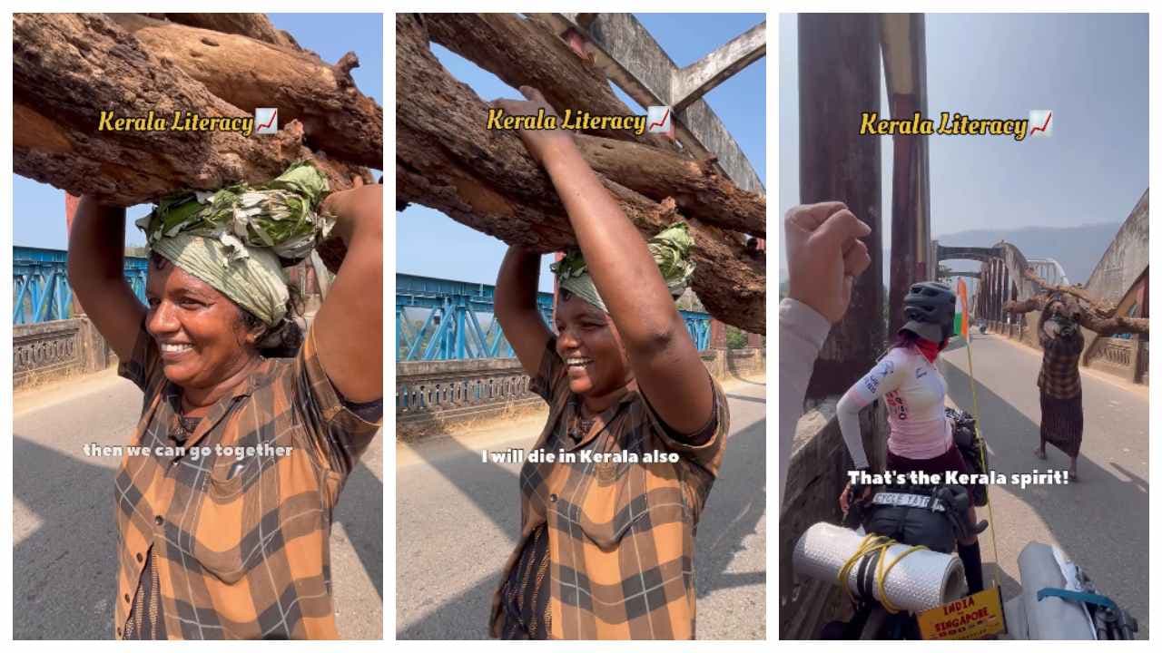 केरल की एक महिला का वीडियो वायरल है, जिसमें वह सिर पर लकड़ी का गट्ठर उठाए व्लॉगर्स से फर्राटेदार अंग्रेजी में बात करती है। लोग इसे राज्य की उच्च साक्षरता का प्रतीक बताकर महिला के आत्मविश्वास और सहजता की प्रशंसा कर रहे हैं।