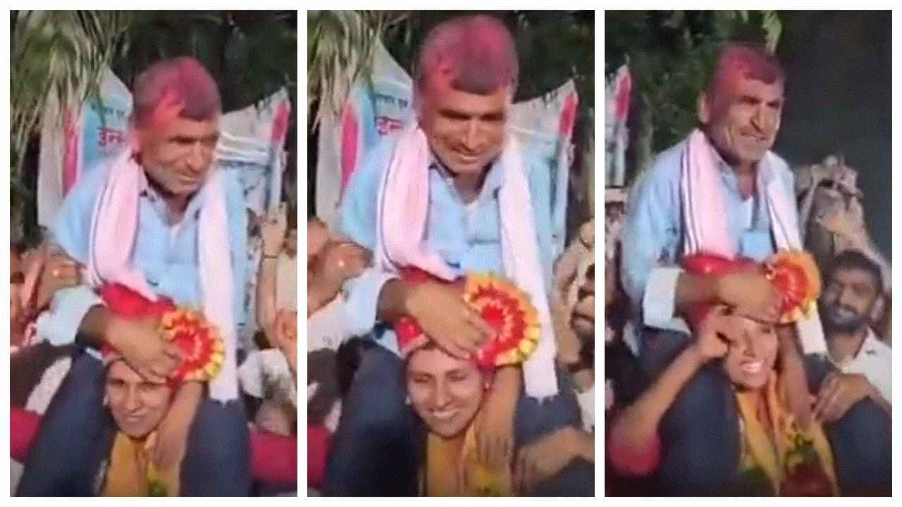 खुशी का कोई ठिकाना न हो, तो इंसान क्या कुछ नहीं करता। महाराष्ट्र के बीड की एक लड़की का ऐसा ही एक दिल छू लेने वाला वीडियो सोशल मीडिया पर वायरल हो रहा है, जिसमें वह अपने पिता को कंधे पर उठाकर नाच रही है। इस लड़की का नाम सुमेधा शेख है, जिनकी हाल ही में महाराष्ट्र पुलिस में भर्ती हुई है। सरकारी नौकरी के लिए सालों की मेहनत जब रंग लाई, तो बेटी ने अपनी खुशी पिता के साथ कुछ इस तरह बांटी। इस वीडियो ने सोशल मीडिया यूजर्स का दिल जीत लिया है।