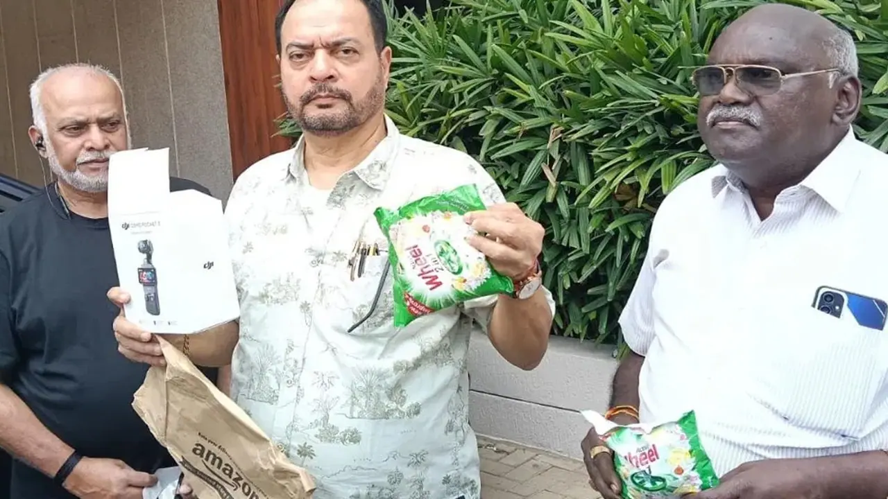 हुबली में एक बिजनेसमैन ने ऐमजॉन पर ₹60,990 का कैमरा ऑर्डर किया था। लेकिन डिलीवरी में उन्हें कैमरे की जगह वॉशिंग पाउडर मिला। जब ऐमजॉन के कस्टमर केयर से कोई सही जवाब नहीं मिला, तो उन्होंने मीडिया के सामने अपनी आपबीती सुनाई।