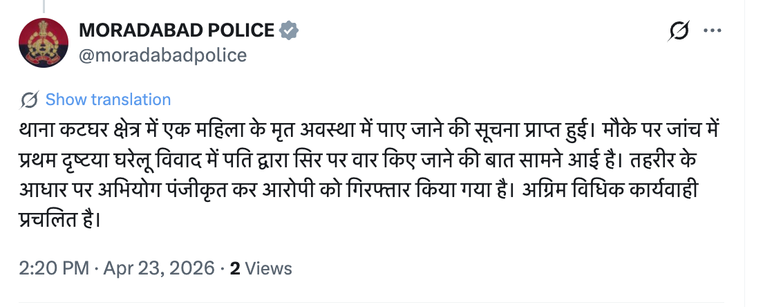 Moradabad Crime News: उत्तर प्रदेश के मुरादाबाद से एक दिल दहला देने वाला मामला सामने आया है, जहां घरेलू विवाद ने एक महिला की जान ले ली। कटघर थाना क्षेत्र में एक पति ने अपनी पत्नी की सिर्फ इसलिए हत्या कर दी क्योंकि उसे उसका जिम जाना पसंद नहीं था। इस घटना ने न सिर्फ इलाके को झकझोर दिया है, बल्कि घरेलू हिंसा की गंभीर हकीकत को भी सामने ला दिया है।