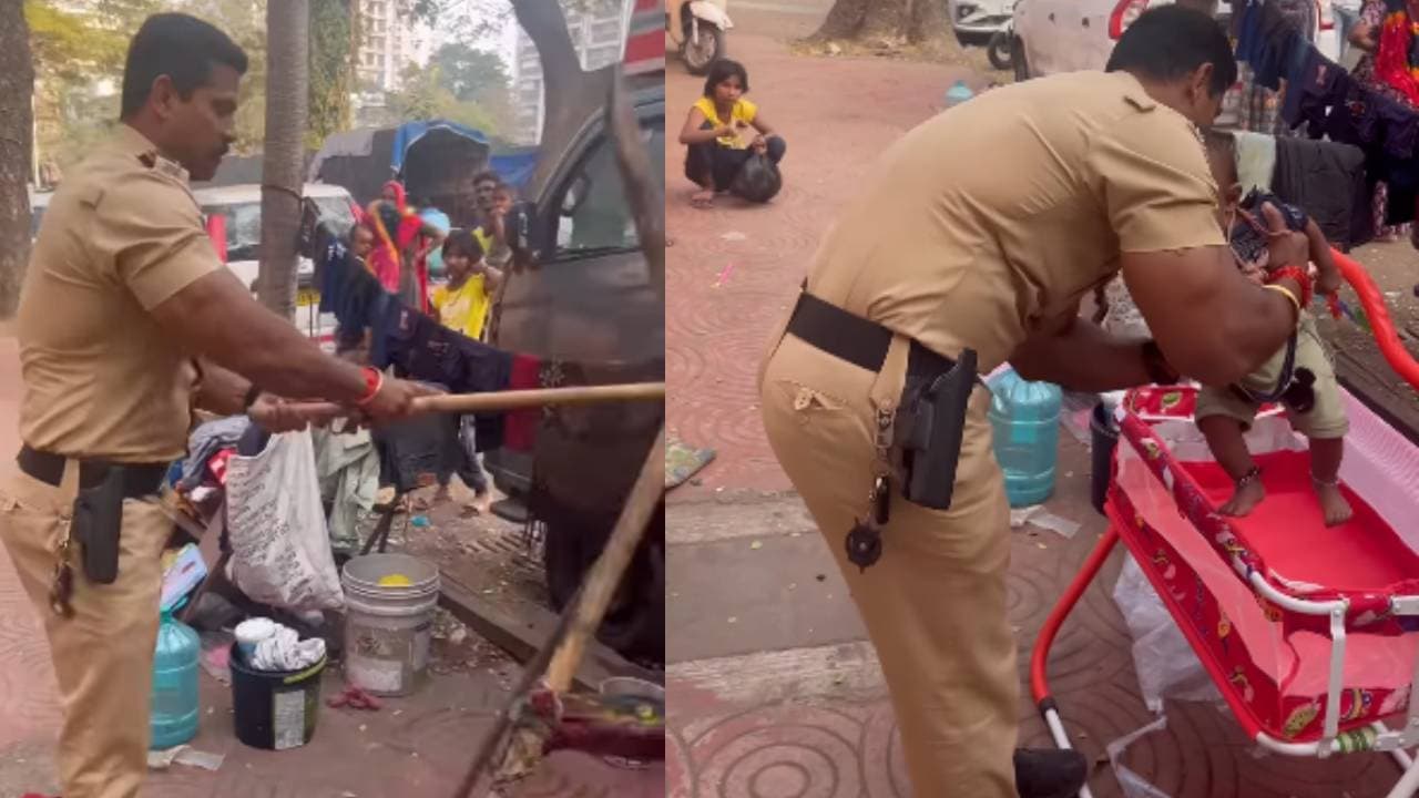 मुंबई के एक पुलिस अफसर का शेयर किया हुआ एक वीडियो सोशल मीडिया पर खूब वायरल हो रहा है। इसमें वह सड़क पर रहने वाली एक मां का पुराना कपड़े का झूला फेंककर उसे एक नया झूला खरीदकर देते हैं।