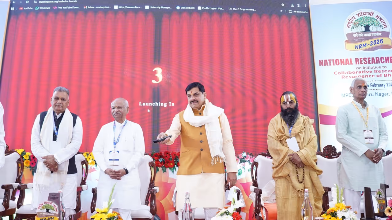 National Research Scholars Meet 2026: भोपाल में राष्ट्रीय शोधार्थी समागम 2026 में मुख्यमंत्री डॉ. मोहन यादव ने शोध को समाज और राष्ट्र निर्माण की शक्ति बताया। कॉन्फ्रेंस ऑन महाकाल की वेबसाइट लॉन्च हुई और नवाचार को बढ़ावा देने का संकल्प दोहराया गया।