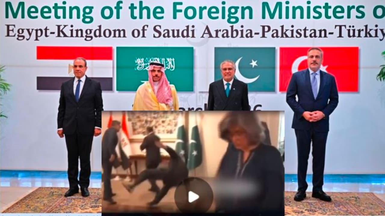 इस्लामाबाद में 4 देशों की बैठक के दौरान पाक विदेश मंत्री इशाक डार गिर पड़े। यह बैठक मध्य पूर्व में तनाव पर थी। पाकिस्तान अब अमेरिका-ईरान के बीच युद्ध रोकने हेतु बातचीत की मेजबानी करेगा।