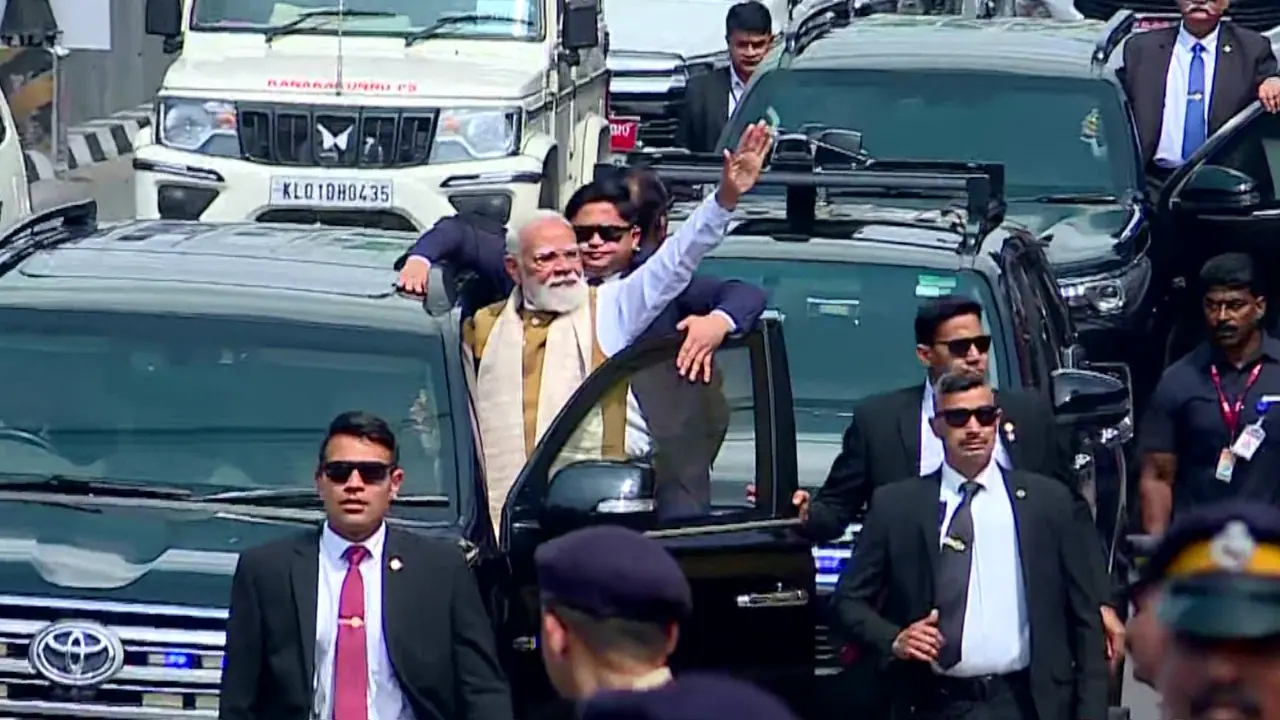 तिरुवनंतपुरम: 'मिशन केरल' के तहत राजधानी पहुंचे प्रधानमंत्री नरेंद्र मोदी का रोड शो शुरू हो गया है। एयरपोर्ट पर मुख्यमंत्री और राज्यपाल ने प्रधानमंत्री का स्वागत किया। सुबह करीब 11 बजे बीजेपी कार्यकर्ताओं के जोश के बीच मोदी का रोड शो शुरू हुआ। यह रोड शो पुत्तरिकंडम मैदान पर खत्म होगा। प्रधानमंत्री को देखने के लिए सड़क के दोनों ओर बड़ी संख्या में कार्यकर्ता इंतजार कर रहे थे। रोड शो के दौरान प्रधानमंत्री ने हाथ हिलाकर कार्यकर्ताओं का अभिवादन किया।