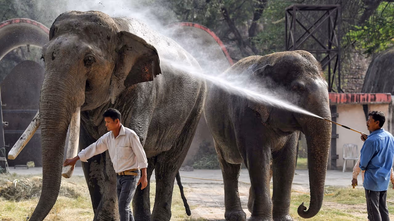 हाथी राज लक्ष्मी को भीषण गर्मी में यूं मिला सुकून