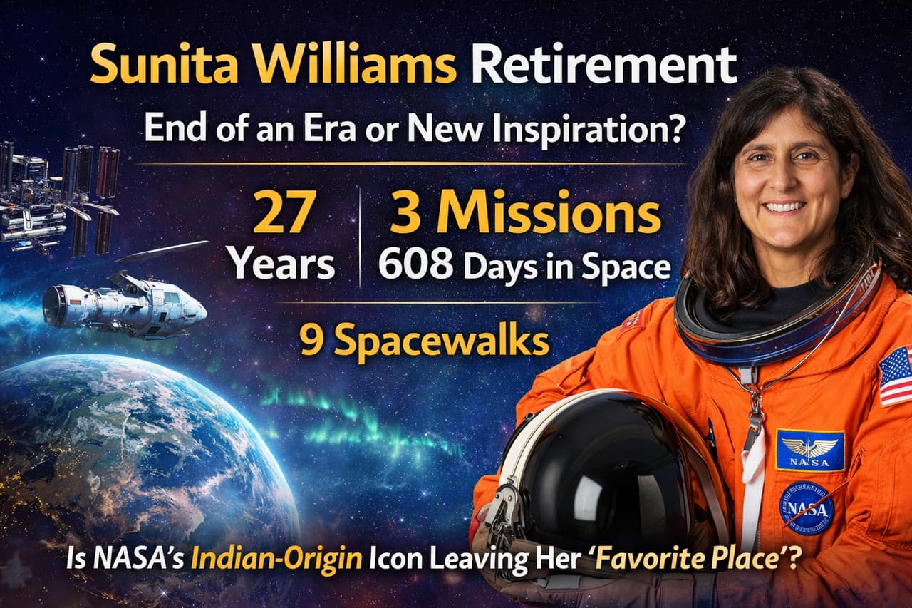 क्या अंतरिक्ष की सबसे पसंदीदा जगह को अलविदा कह रही हैं सुनीता विलियम्स? 27 साल, 3 मिशन, 608 दिन अंतरिक्ष में और 9 स्पेसवॉक के बाद भारतीय मूल की NASA एस्ट्रोनॉट सुनीता विलियम्स रिटायर हो गईं। क्या यह एक युग का अंत है या नई प्रेरणा की शुरुआत?