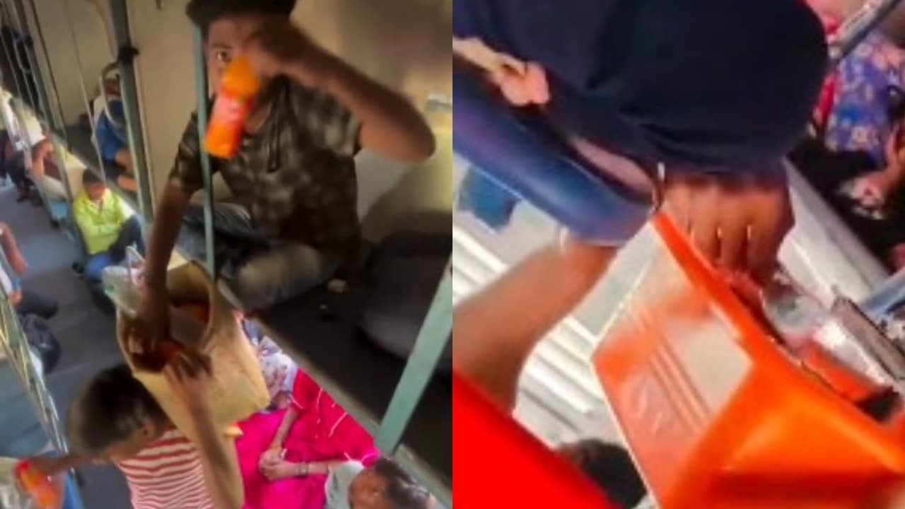 सोशल मीडिया पर कुछ वीडियो वायरल हो रहे हैं, जिनमें ट्रेन के यात्री फेरीवालों से खाने के पैकेट और ड्रिंक्स चुराते दिख रहे हैं. इस घटना ने लोगों के 'सिविक सेंस' पर एक नई बहस छेड़ दी है और दोषियों पर कार्रवाई की मांग हो रही है.