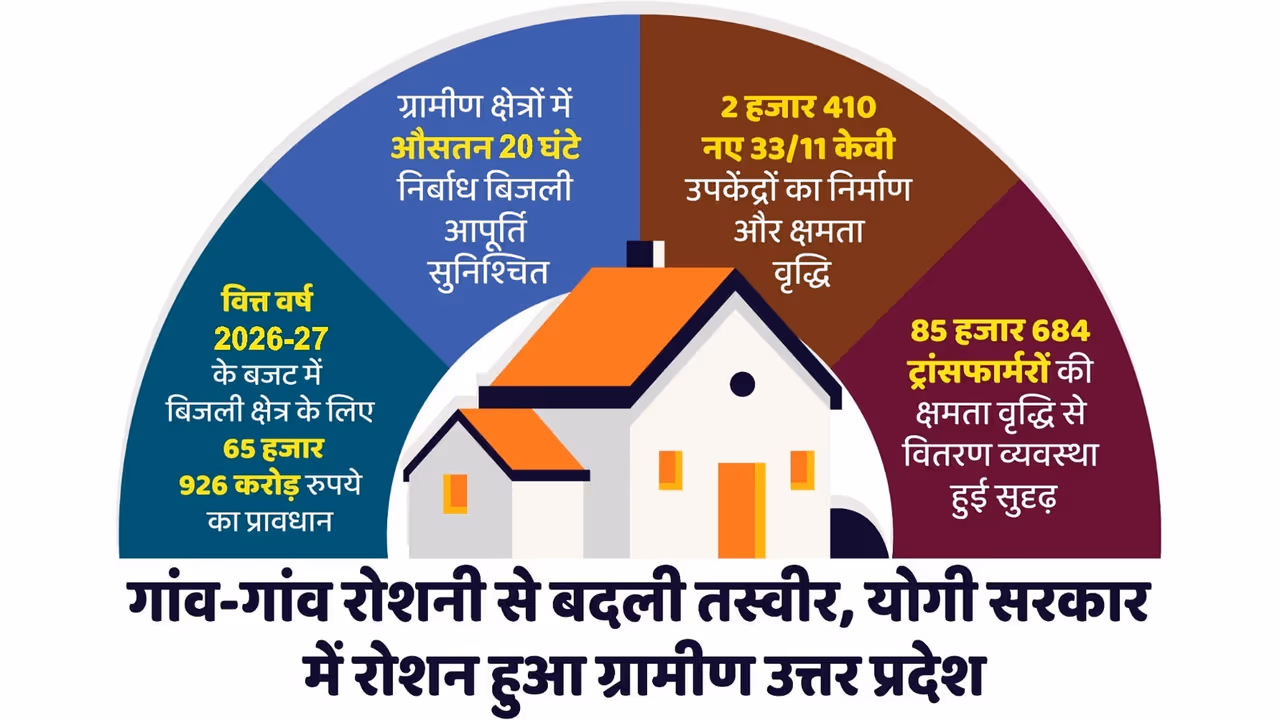 लखनऊ। वर्ष 2017 से पहले उत्तर प्रदेश के कई गांव बिजली की कमी से परेशान थे, लेकिन अब स्थिति काफी बदल गई है। योगी आदित्यनाथ सरकार ने ग्रामीण विद्युतीकरण को विकास की बुनियाद बनाकर हर घर तक बिजली पहुंचाने का लक्ष्य योजनाबद्ध तरीके से पूरा किया है। अब अधिकांश गांवों में घर-घर बिजली कनेक्शन उपलब्ध हैं। बजट 2026-27 में बिजली क्षेत्र के लिए 65,926 करोड़ रुपये का प्रावधान प्रस्तावित किया गया है।