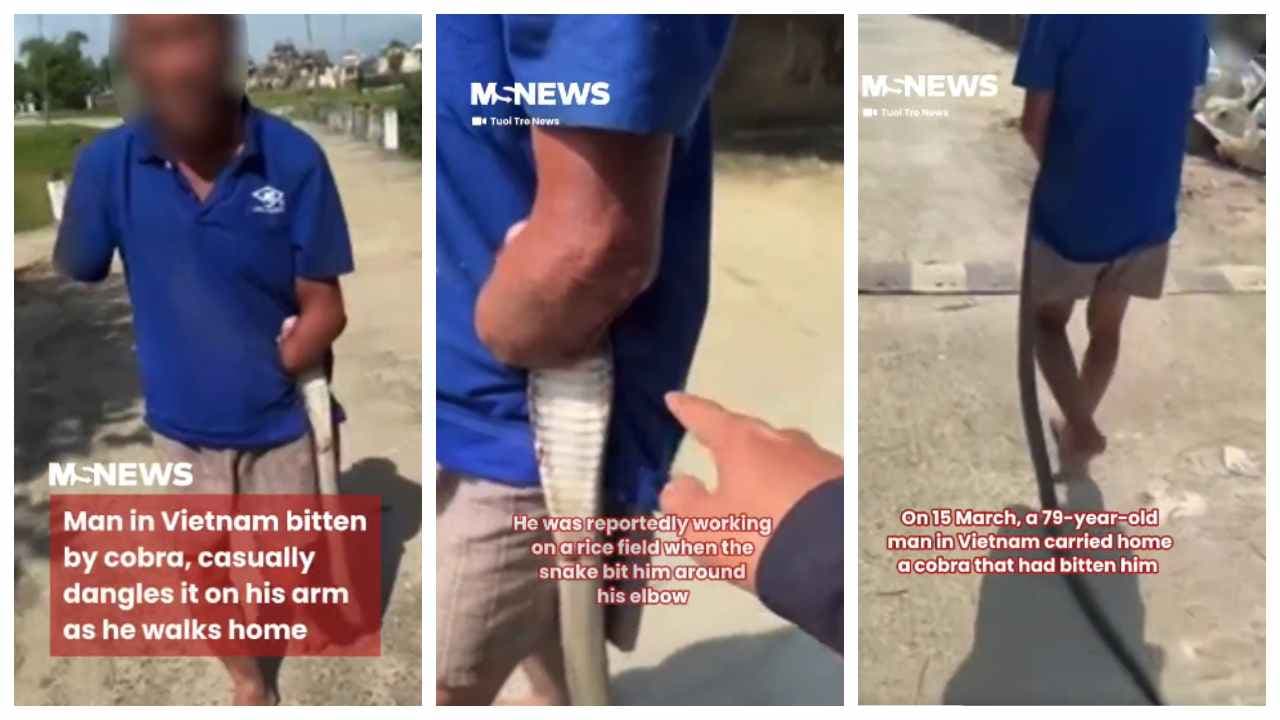 डाई लोक कम्यून के स्थानीय लोगों के मुताबिक, इस बुजुर्ग आदमी को सुबह एक कोबरा ने काट लिया था। लेकिन सबको हैरान करते हुए, उन्होंने हिम्मत दिखाई और उस जहरीले सांप को मार डाला। इसके बाद, वह सांप को अपने कटे हुए हाथों के बीच फंसाकर अस्पताल पहुंच गए। बताया जा रहा है कि अस्पताल से इलाज के बाद वह उसी सांप को अपने घर भी ले गए। लेकिन उनकी हालत देखकर परिवार वालों को लगा कि उन्हें बेहतर इलाज की जरूरत है। इसलिए परिवार वाले उन्हें दोबारा अस्पताल ले गए। पहले वह अकेले क्वांग नाम के एक स्थानीय मेडिकल सेंटर गए थे। लेकिन कोबरा का जहर खतरनाक होने के कारण, उन्हें बाद में डा नांग जनरल अस्पताल में भर्ती कराया गया, ताकि उन पर खास नजर रखी जा सके।