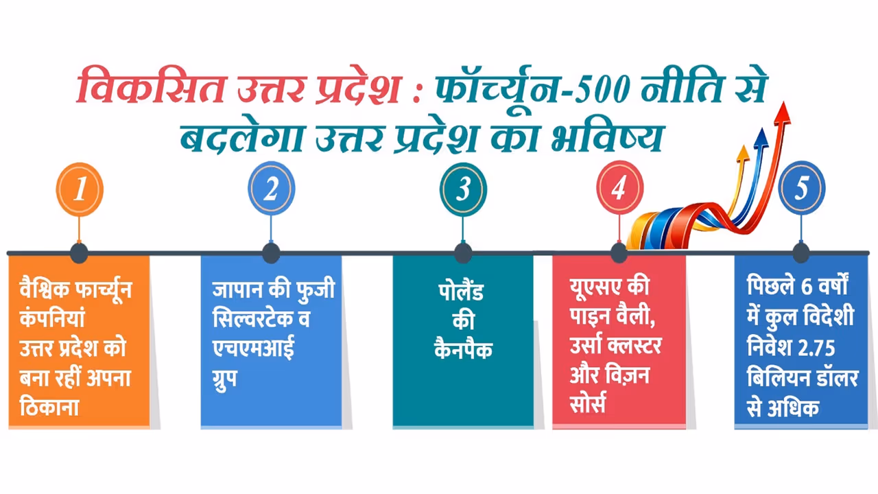 योगी सरकार की फॉर्च्यून-500 नीति से उत्तर प्रदेश वैश्विक निवेशकों का पसंदीदा गंतव्य बन रहा है। हाईटेक मैन्युफैक्चरिंग, आरएंडडी सपोर्ट और सब्सिडी से निवेश, रोजगार और निर्यात को नई मजबूती मिल रही है।