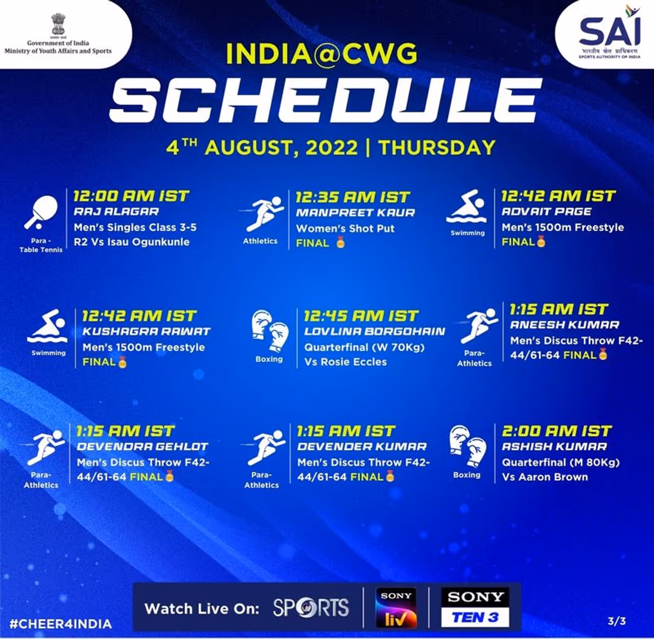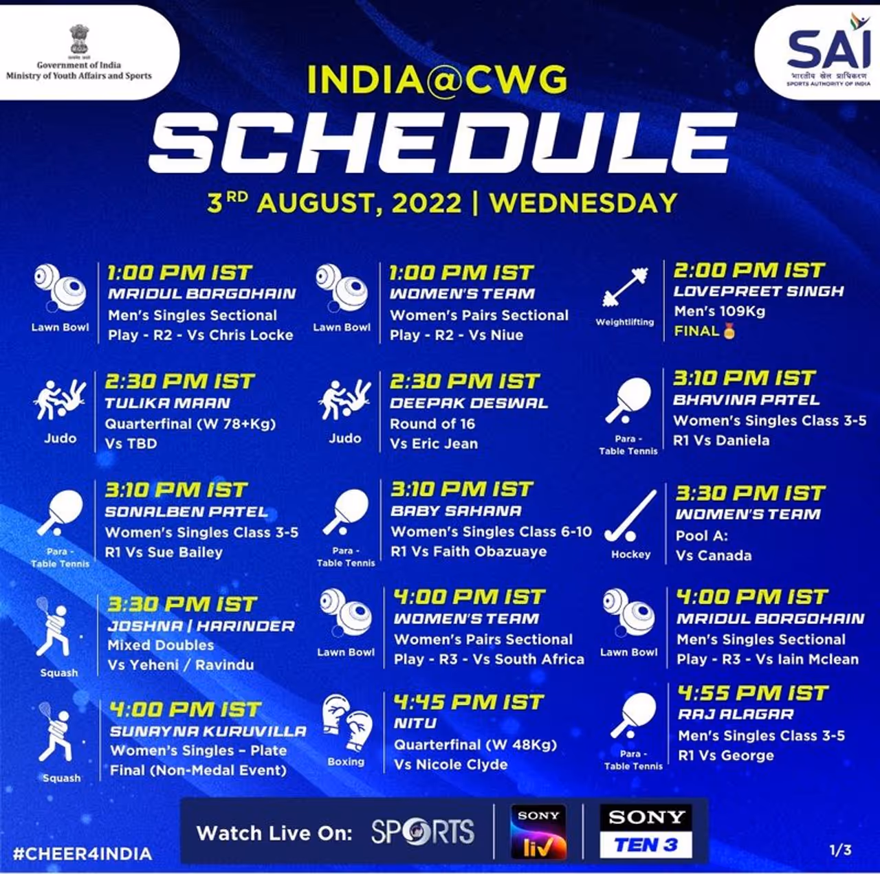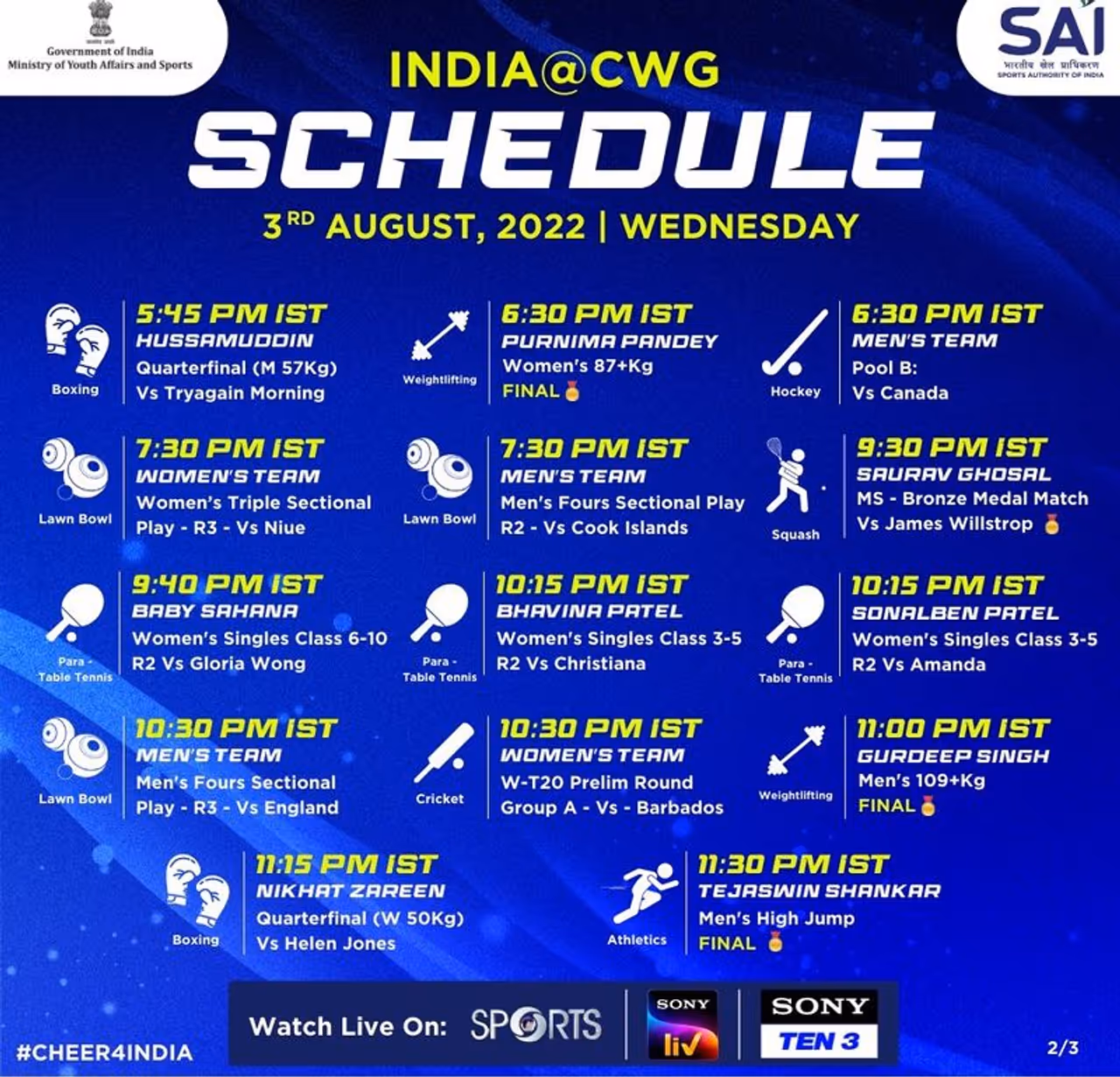 कॉमनवेल्थ में आज का भारत का शेड्यूल