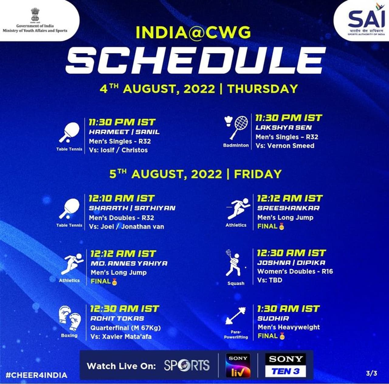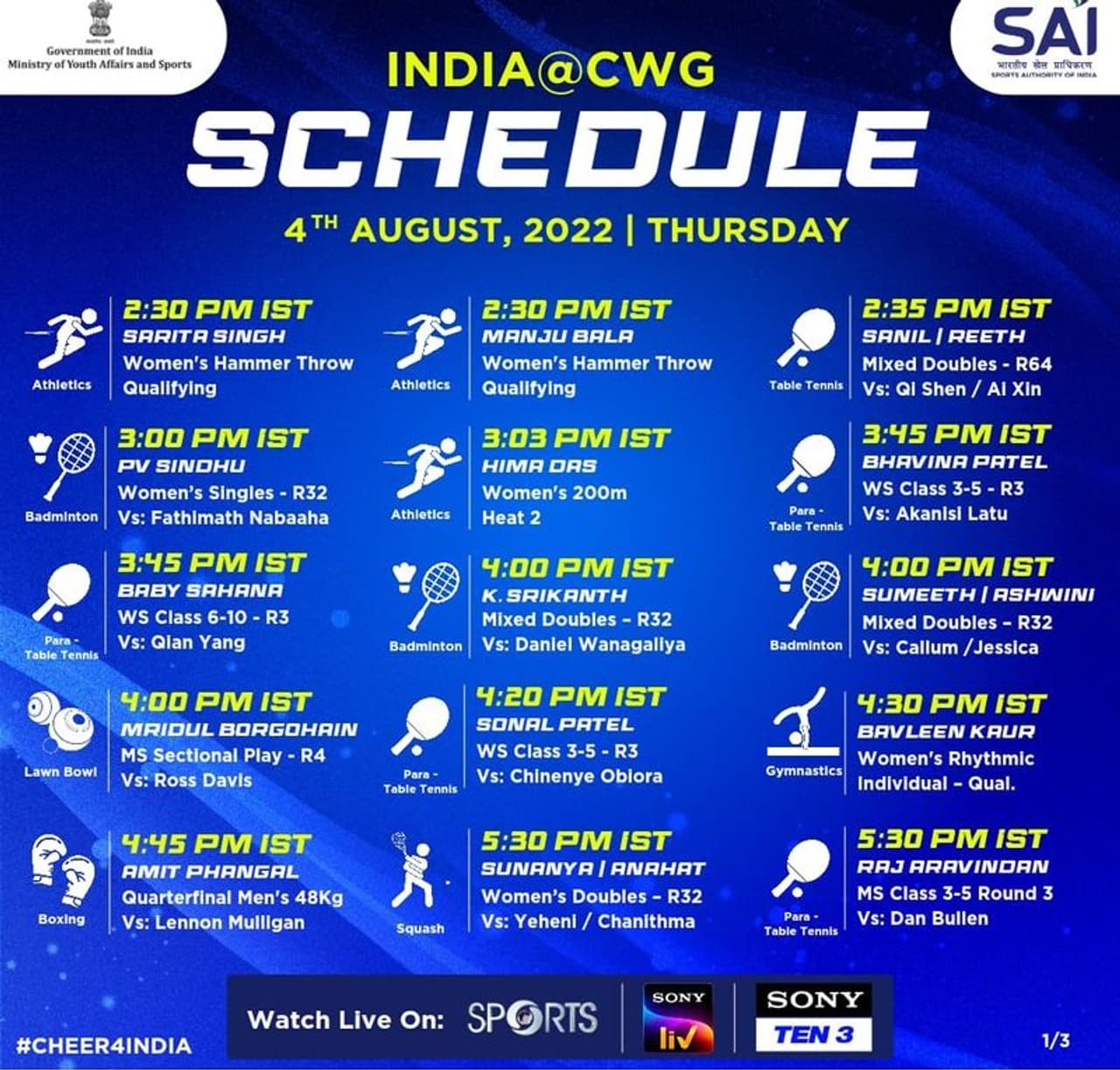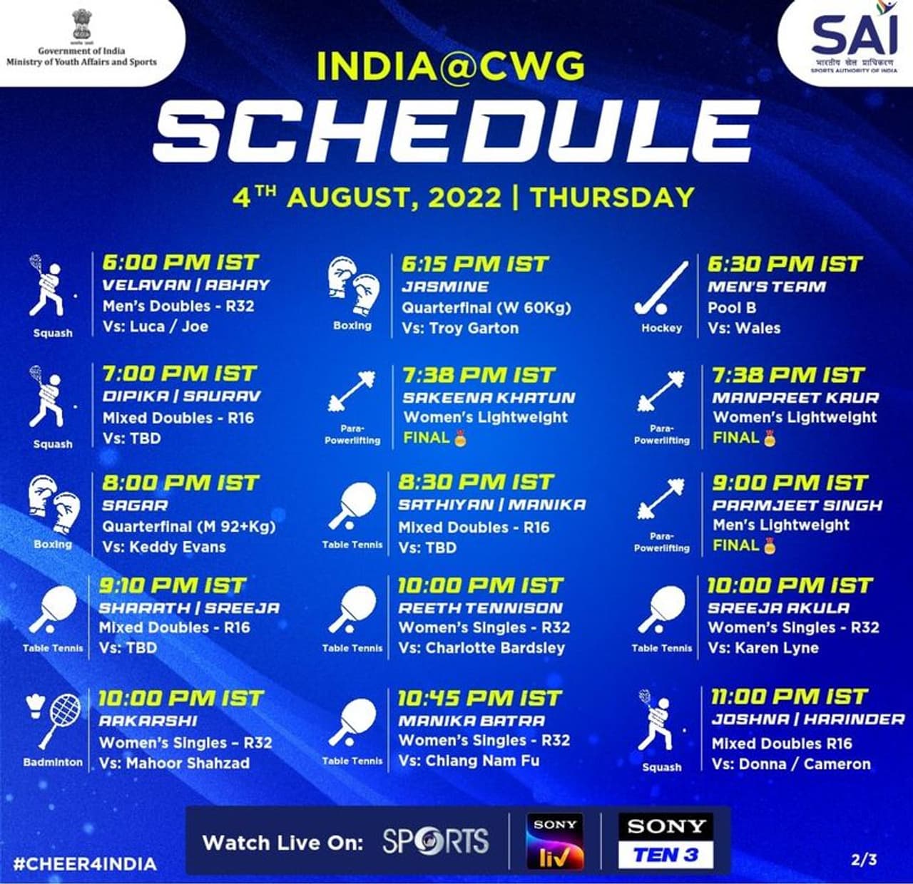 कॉमनवेल्थ गेम्स में आज भारत का शेड्यूल