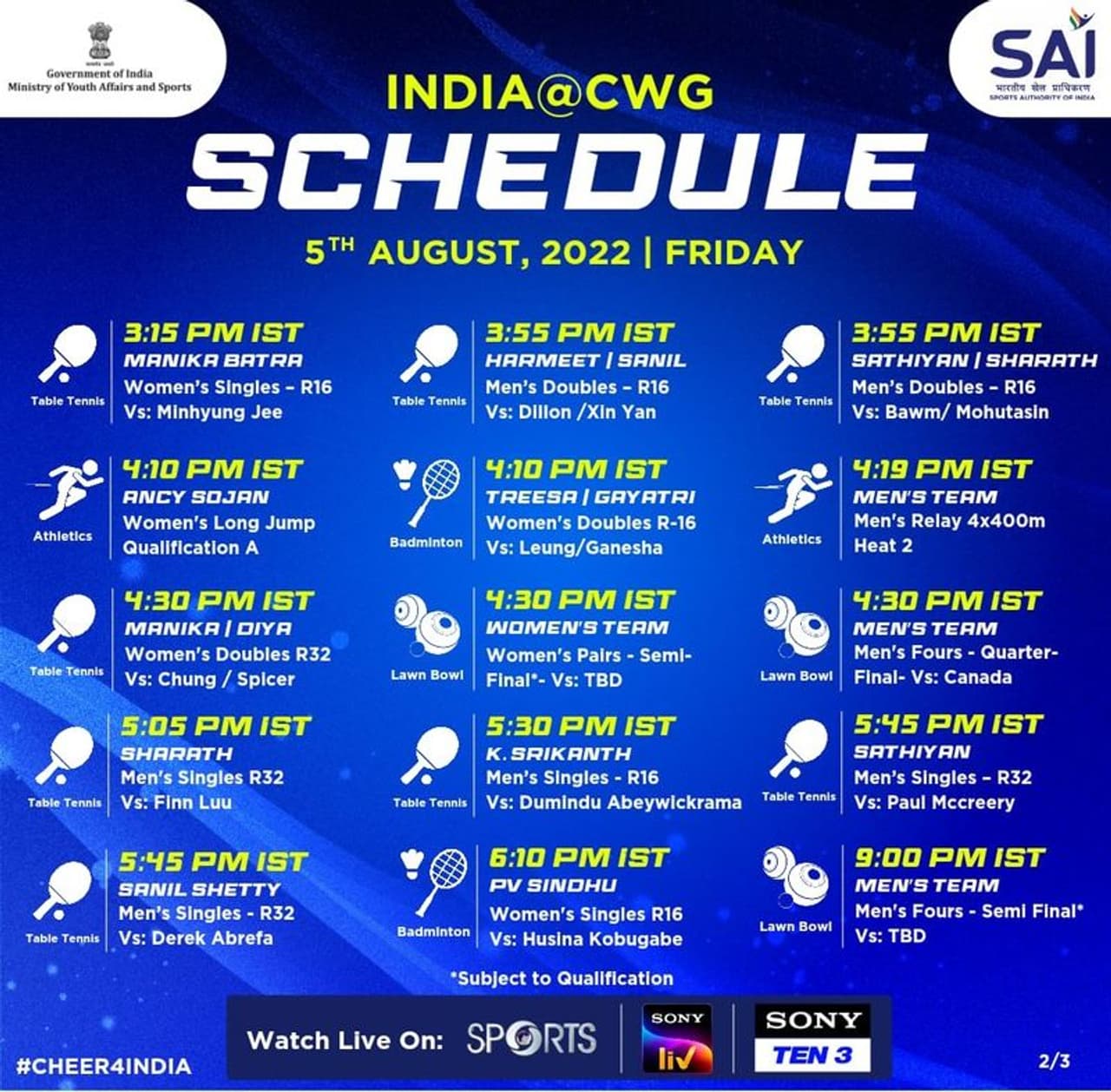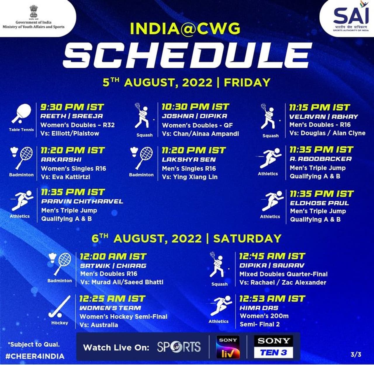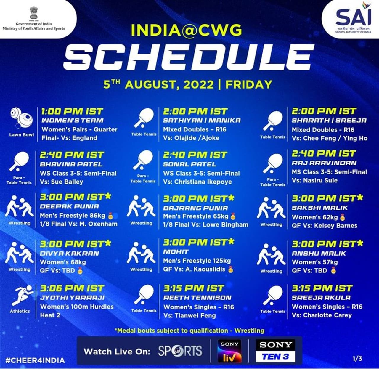 कॉमनवेल्थ गेम्स में 8वें दिन भारत का शेड्यूल