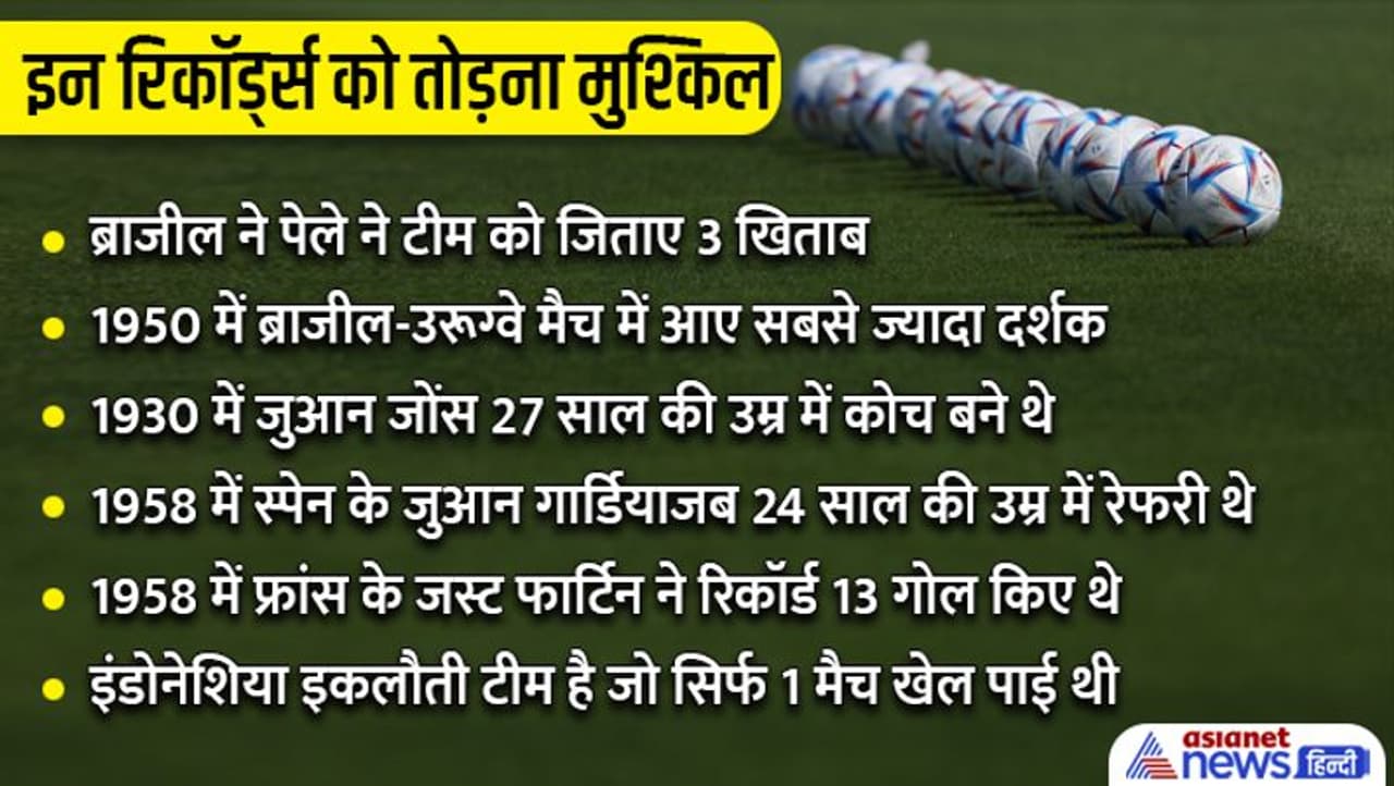 FIFA World Cup 2022 Updates. 20 नवंबर रविवार से कतर में फीफा वर्ल्डकप शुरू होने जा रहा है। इसके बाद अगले 29 दिनों तक पूरी दुनिया पर फुटबॉल का खुमार चढ़ा रहेगा। इस दौरान वर्ल्ड के स्टार फुटबॉलर क्रिस्टियानो रोनाल्डो, लियोनेल मेसी, नेमार जूनियर और सुआरेज कई रिकॉर्ड ध्वस्त कर सकते हैं। इस बार के विश्वकप में कई ऐसे युवा खिलाड़ी भी जो दुनिया पर अपनी छाप छोड़ने के लिए बेकरार हैं। कुल मिलाकर 32 टीमों के बीच होने वाले 64 मुकाबले आने वाले 1 महीने तक पूरे वर्ल्ड को इंटरटेन करने वाली हैं। आइए हम आपको बताते हैं कि इस विश्वकप में कौन-कौन से रिकॉर्ड बनने जा रहे हैं...