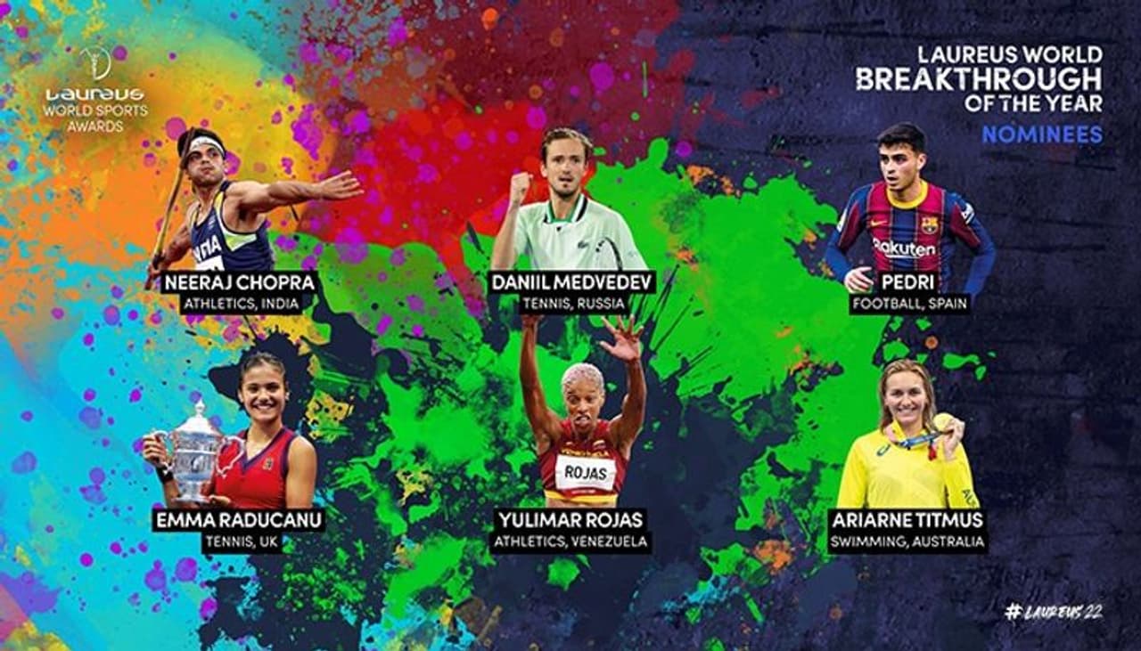 24 साल के नीरज को 2022 लॉरियस वर्ल्ड ब्रेकथ्रू ऑफ द ईयर अवार्ड की श्रेणी में नामांकित किया गया है उसमें उन्हें डेनियल मेदवेदेव (टेनिस, रूस), पेड्रि (स्पेन, फुटबॉल), एम्मा राकुकानु (टेनिस, यूके), युलिमार रोजास (एथलेटिक्स, वेनेजुएला), एरियन टिटमस (तैराकी, ऑस्ट्रेलिया) से चुनौती मिलेगी।