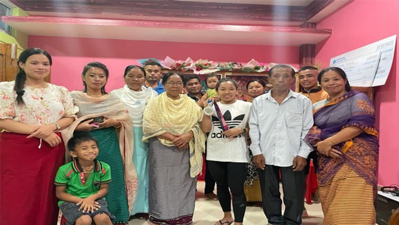 बुधवार को सिल्वर मेडलिस्ट मीराबाई चानू ने अपने परिवार के साथ एक फोटो शेयर की और लिखा कि "2 साल के लंबे अंतराल के बाद अपने परिवार से मिलने की यह भावना शब्दों से परे है। मुझपर विश्वास दिखाने और मेरा समर्थन करने के लिए मैं आप सभी का आभारी हूं। धन्यवाद , एमा और बाबा ने मेरे लिए यहां तक पहुंचने के लिए किए गए सभी बलिदानों के लिए।”