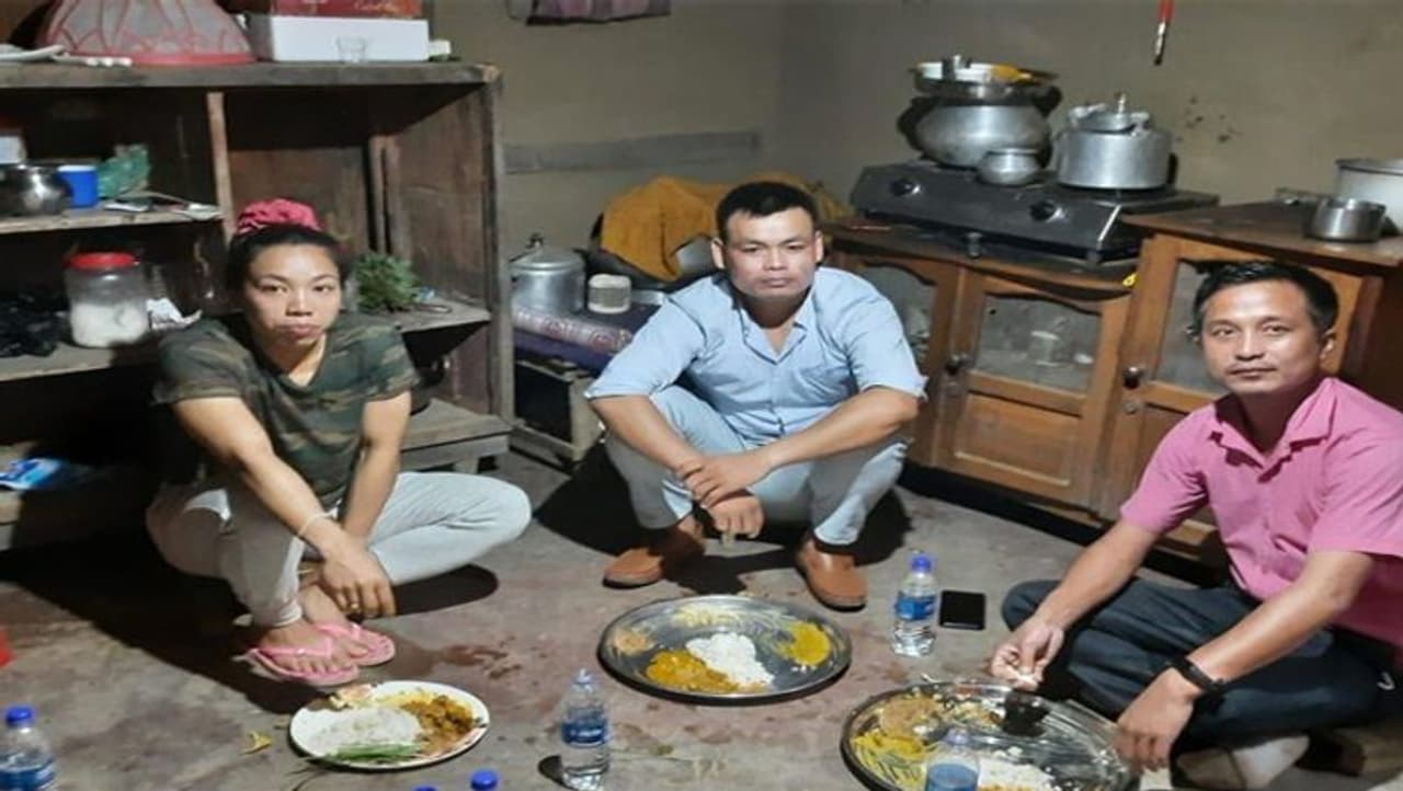 इसके साथ ही मीराबाई चानू की एक फोटो सोशल मीडिया पर खूब वायरल हो रही है, जिसमें वह जमीन पर बैठकर घरवालों के साथ खाना खा रही हैं। लोग इस फोटो पर कमेंट कर मीराबाई के जज्बे को सलाम कर रहे हैं। एक यूजर ने लिखा, 'प्यार, सम्मान, गौरव हमारे पास आप जैसे खिलाड़ी हैं' वहीं, एक अन्य यूजर ने लिखा, 'हौसले और गरीबी के सामने भगवान भी हार मान लेते हैं।'